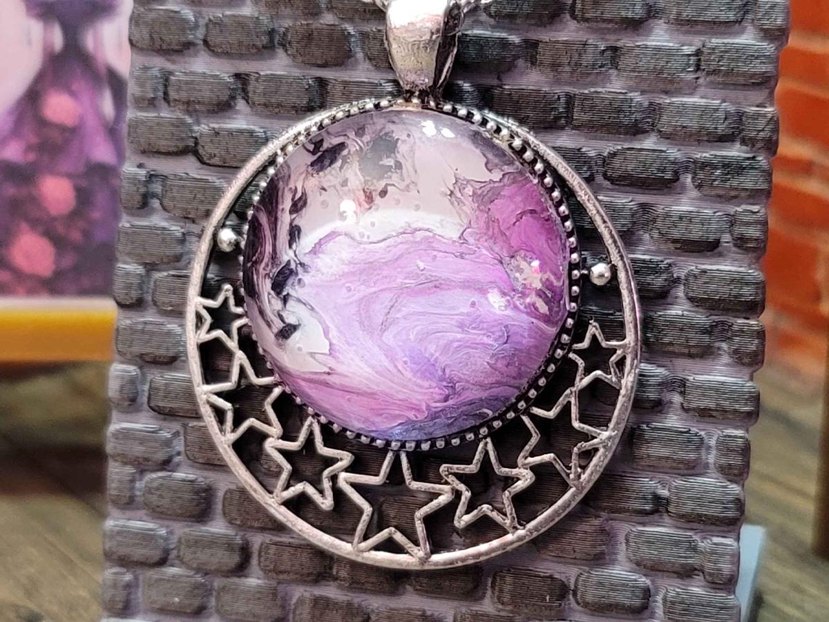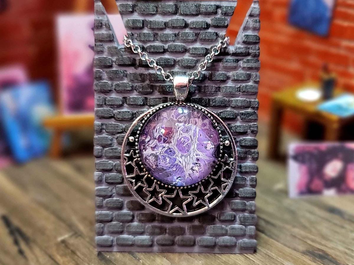 Each of these acrylic pour pendants is absolutely one-of-a-kind. You'll receive your own custom tiny artwork (those pictured are representative of the collection but none are exactly the same, each one is unique!)