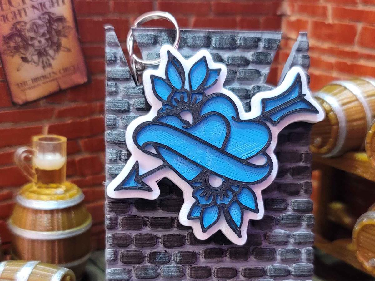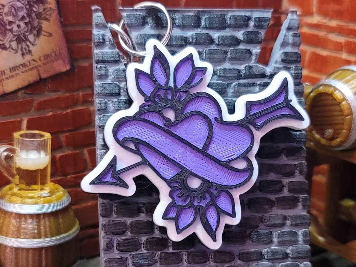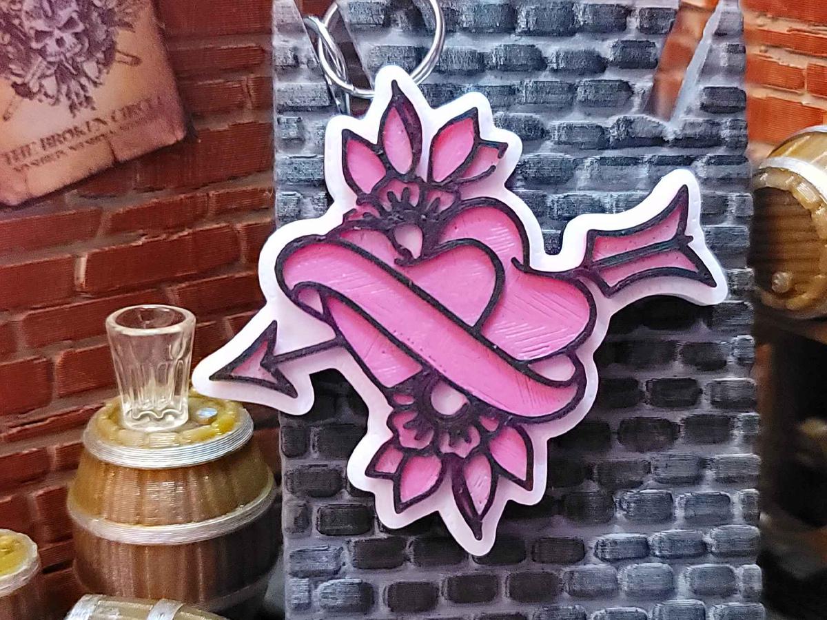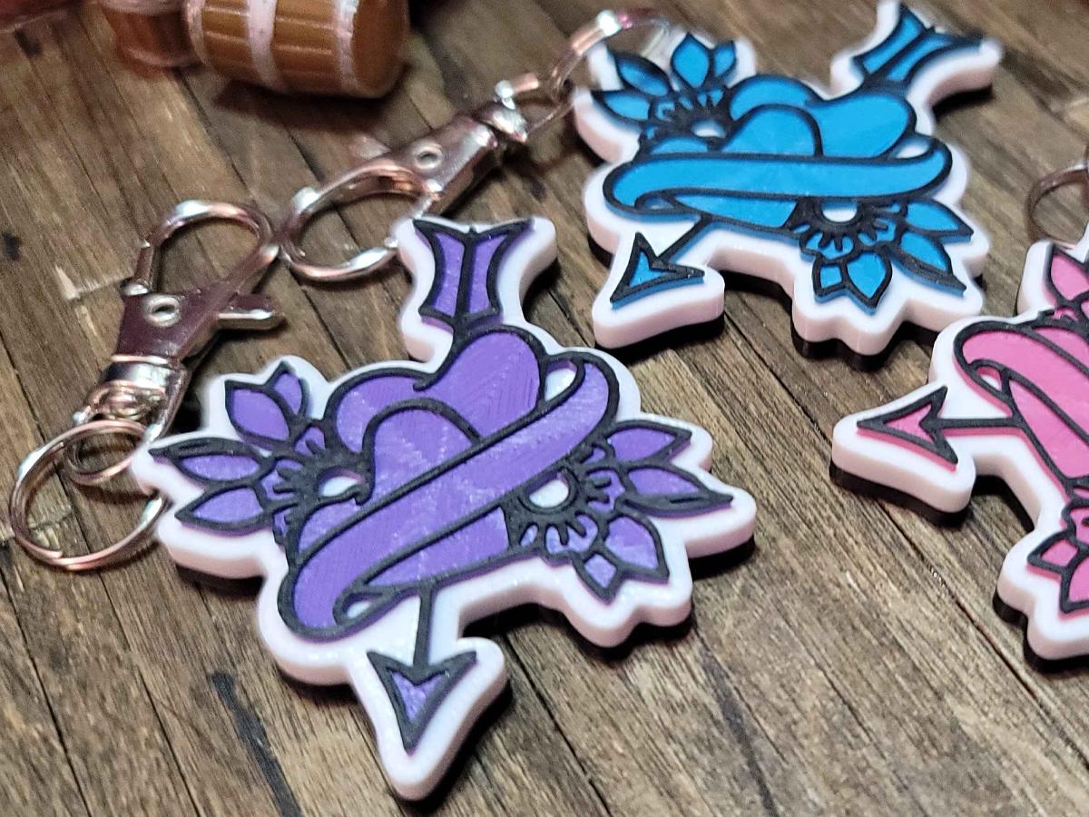 3d printed with love by Kit Rocha, these 1.75" x 1.75" keychains sport a black base, a white background, and the Broken Circle's logo in your favorite color. They come with a silver split ring and a keychain clip that makes it easy to clip this to anything!