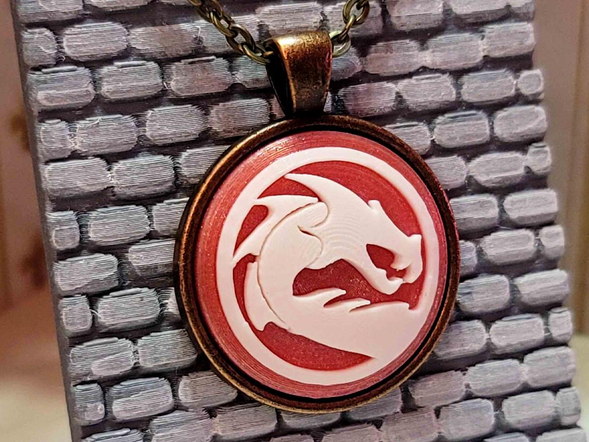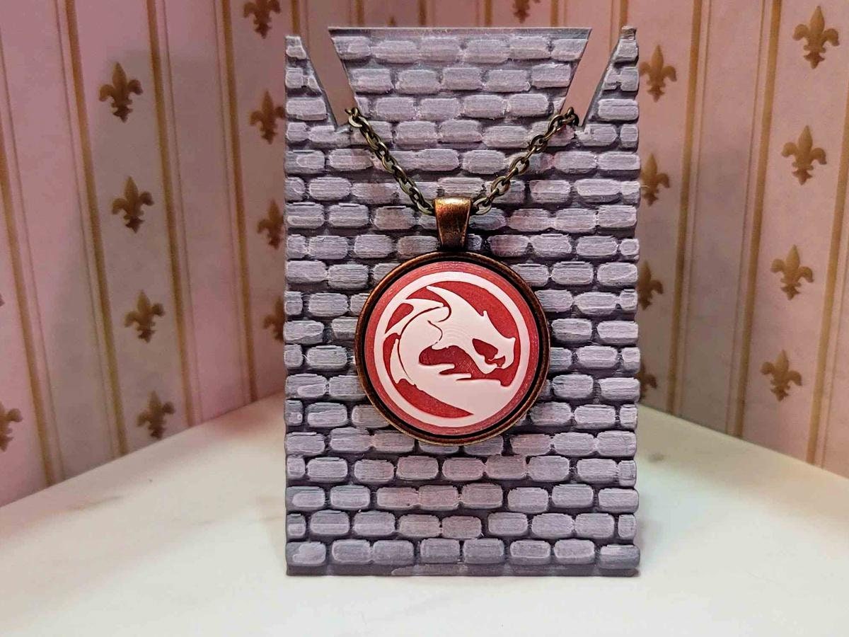 Ash's dragon in white sits on a glittery background that shifts between orange, red, and gold. (He IS the Lord of Fire, after all!) These are 3d printed with exquisite detail!