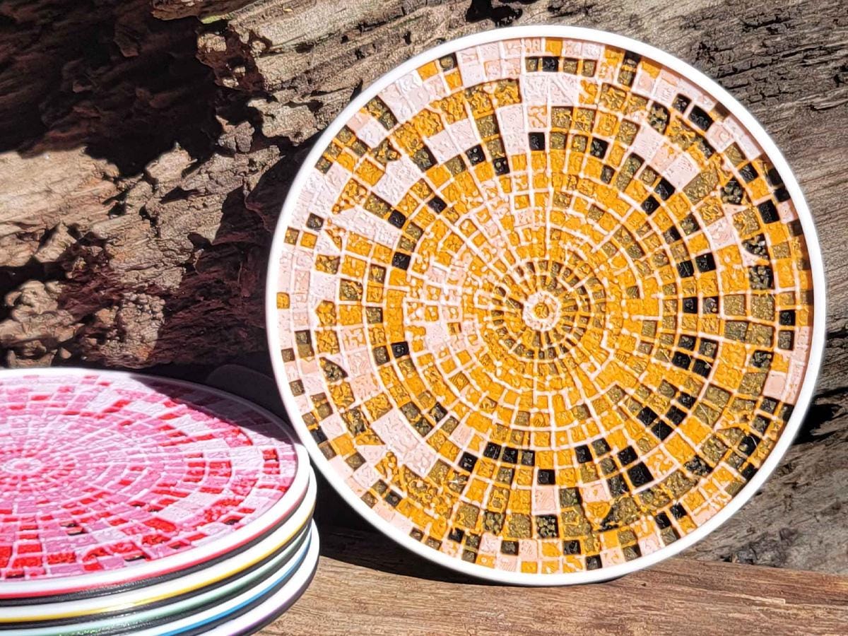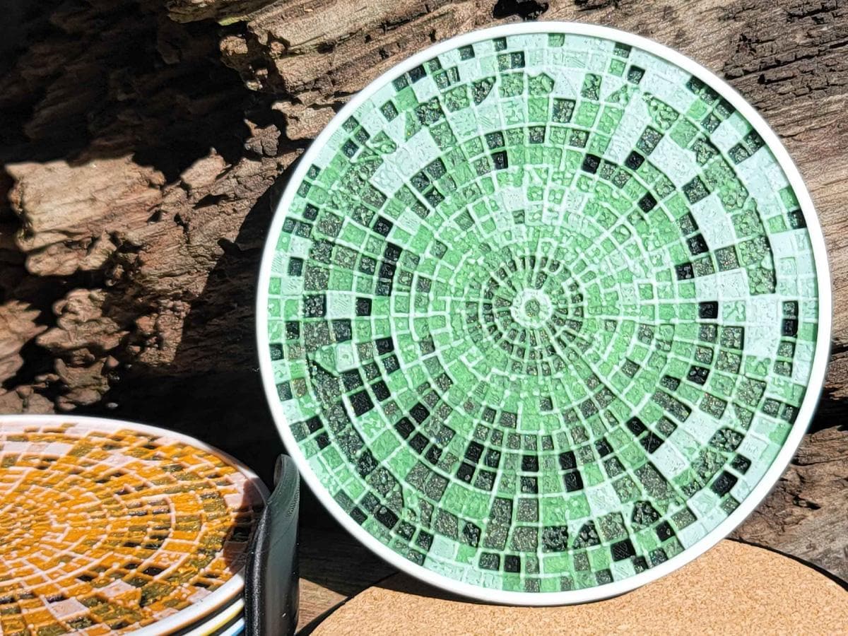This coaster set is inspired by ancient mosaic tiles, with a worn & weathered vibe that just makes it that much cooler.