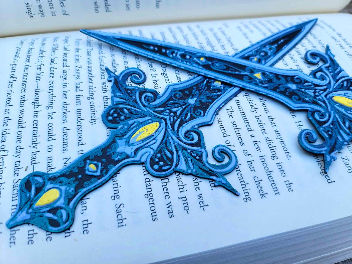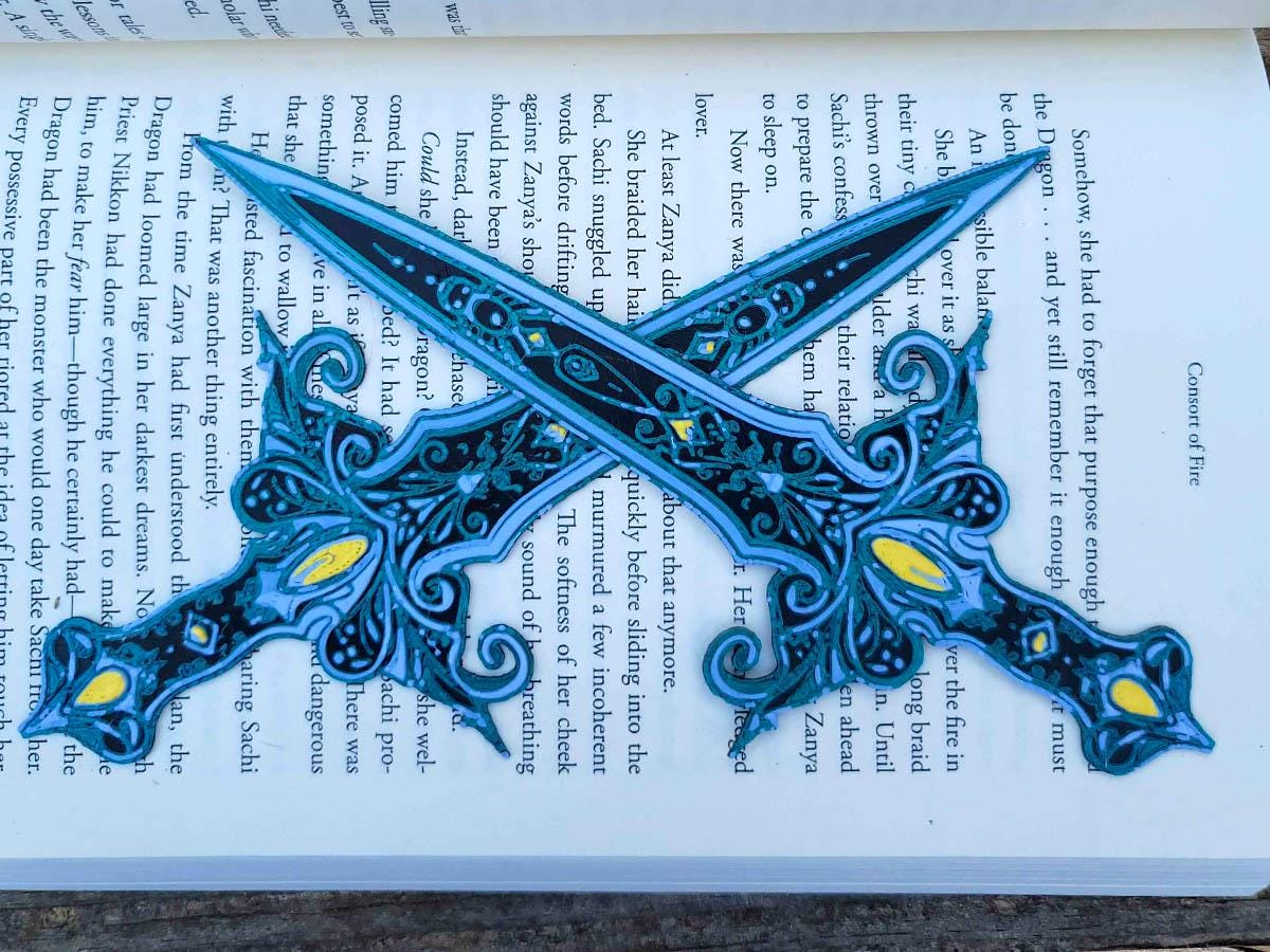 This bookmark is the perfect way to keep your place in that epic fantasy or steamy romantasy you're reading! 7" long & 3" wide, it's still flat enough to sit easily inside your book to hold your place.
