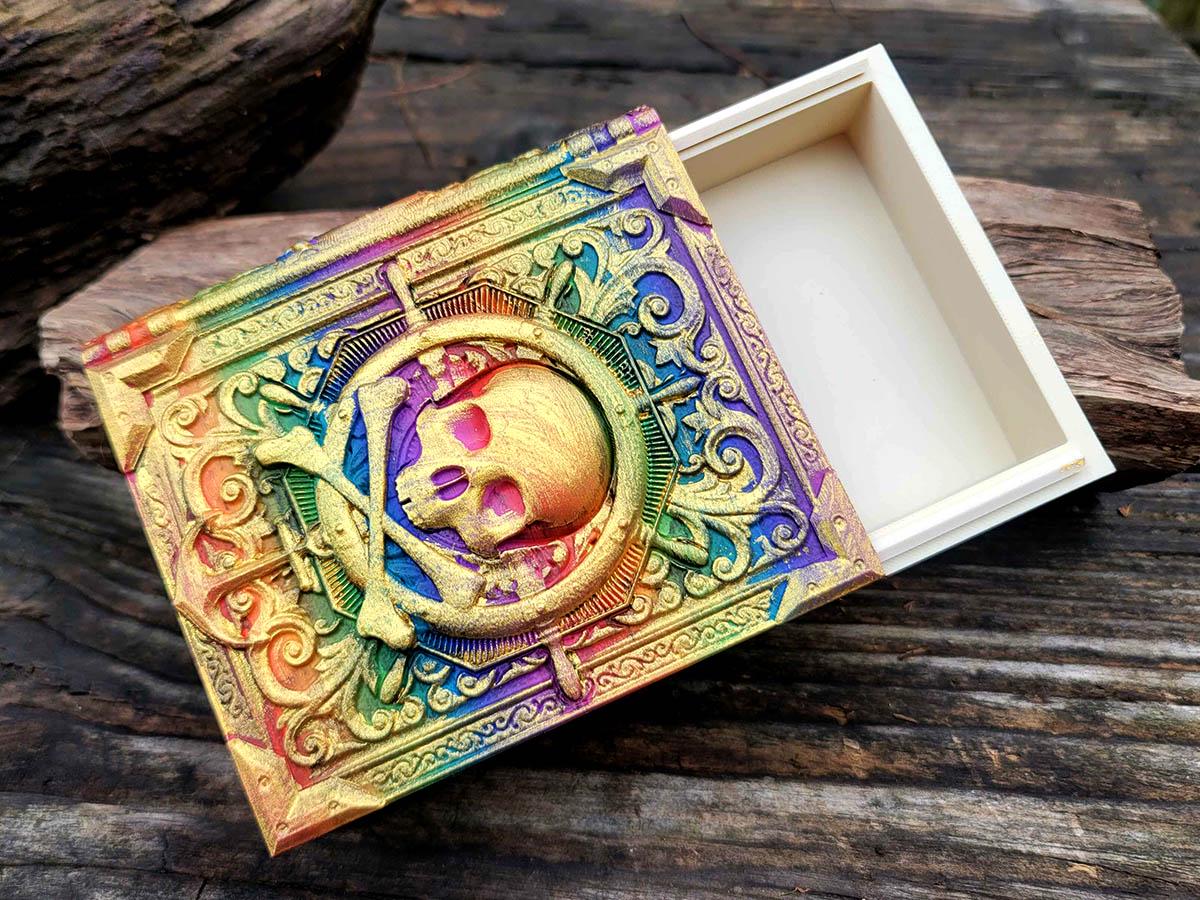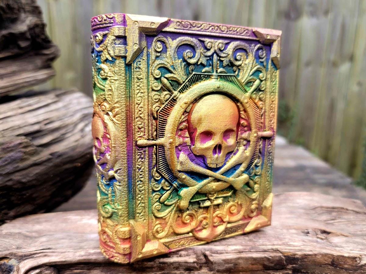 Great for book nerds, gamers, or anyone who has ever wanted to hide a special treasure inside a beautiful book, these ancient tomes look great on your shelf AND make great storage! The pages slide out of the top revealing a hiding space within, then pop back in to be (very gently) held in place with magnets.