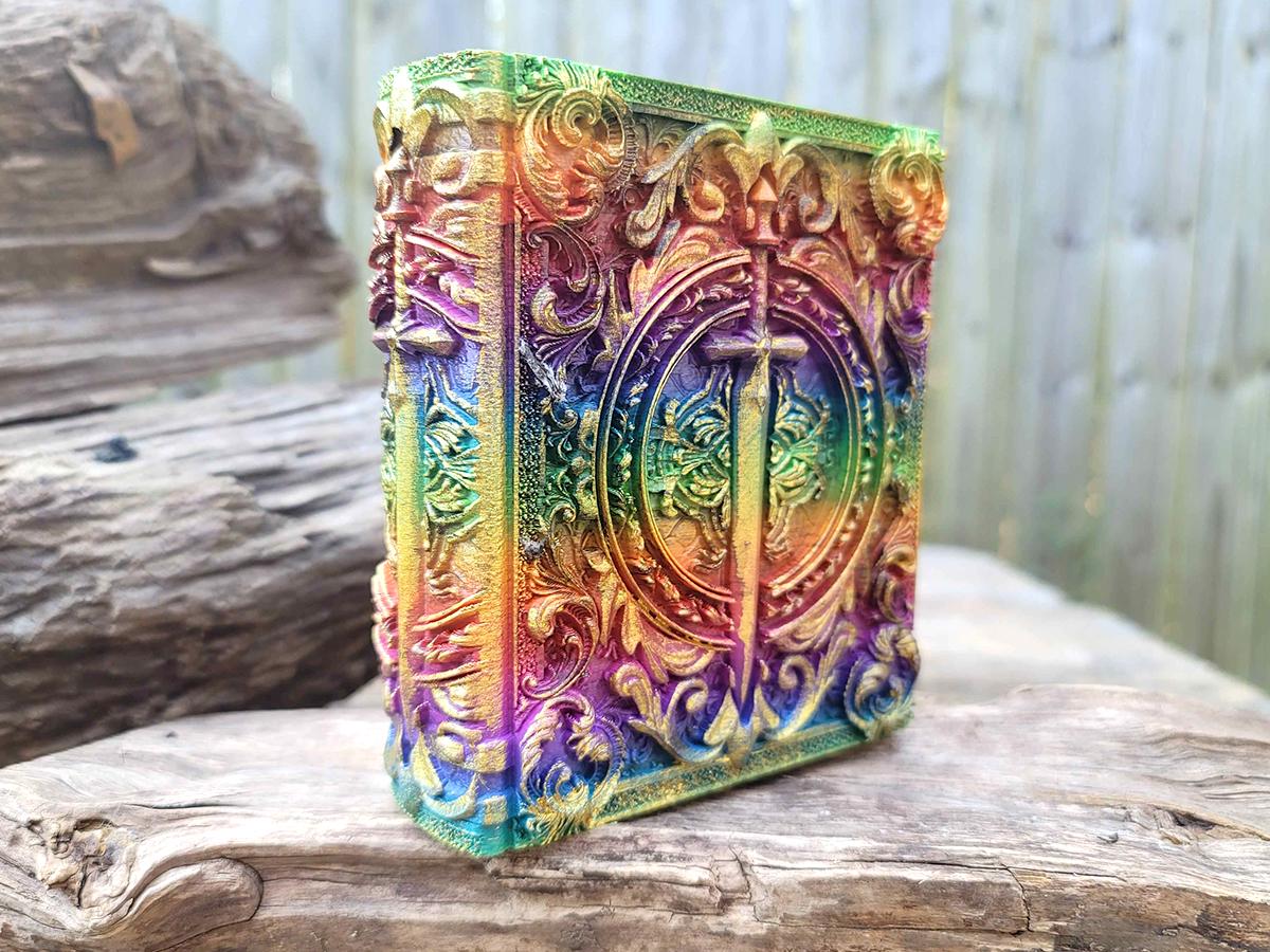 Great for book nerds, gamers, or anyone who has ever wanted to hide a special treasure inside a beautiful book, these ancient tomes look great on your shelf AND make great storage! The pages slide out of the top revealing a hiding space within, then pop back in to be (very gently) held in place with magnets.