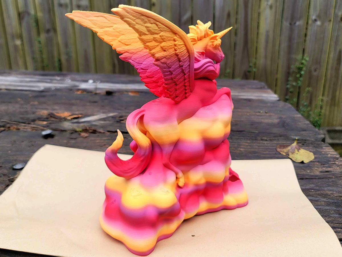 Note: because of the nature of gradients, the colors may not be distributed exactly as the one in the picture. But every unicorn dice tower will have several complete gradients of these colors!