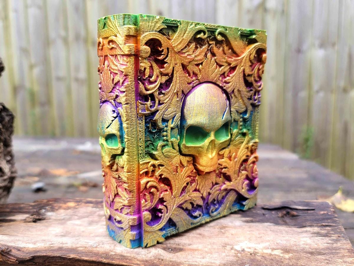 Great for book nerds, gamers, or anyone who has ever wanted to hide a special treasure inside a beautiful book, these ancient tomes look great on your shelf AND make great storage! The pages slide out of the top revealing a hiding space within, then pop back in to be (very gently) held in place with magnets.