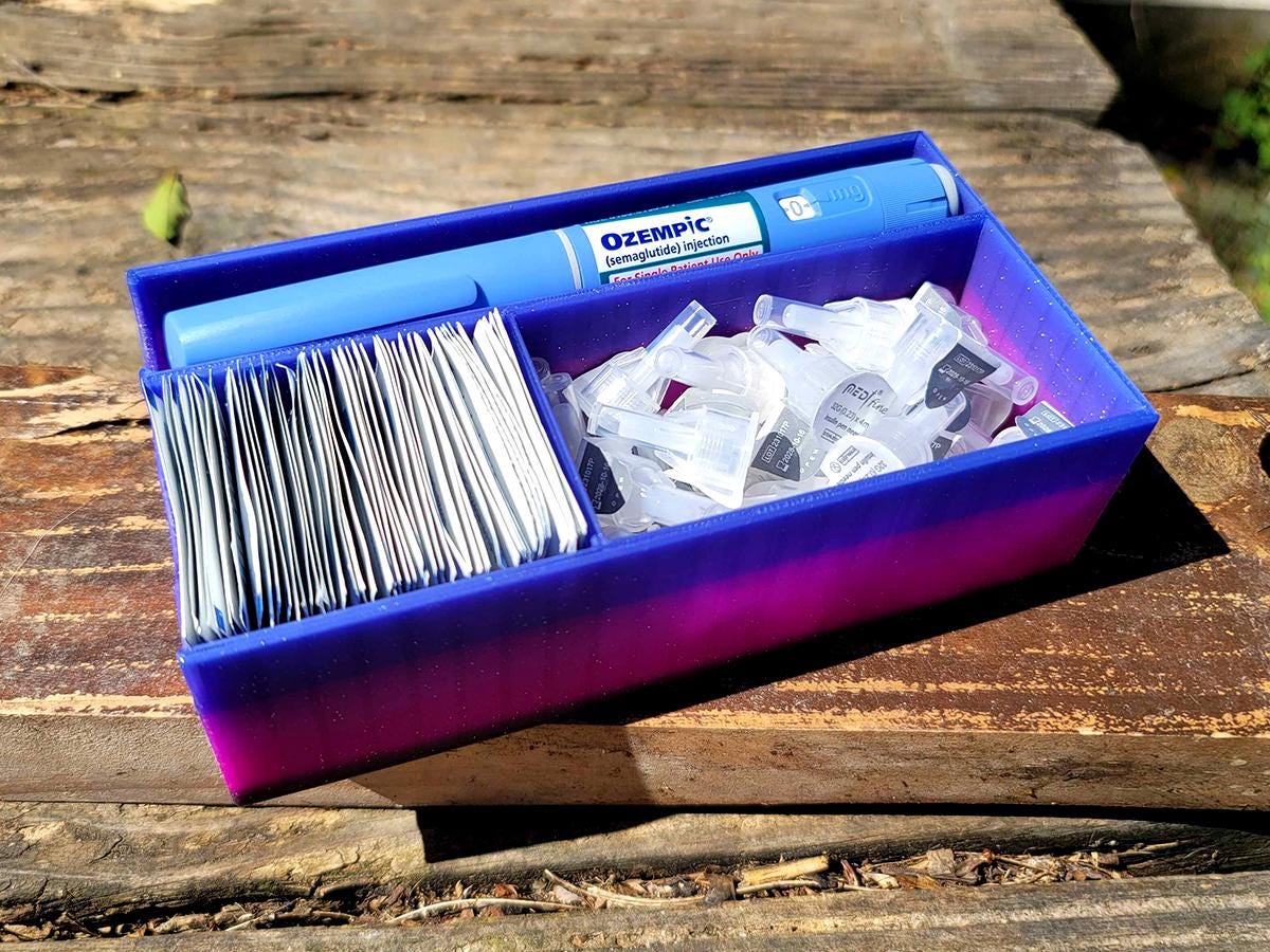 (While it might fit a mounjaro/zepbound pen, as those are single use and have the flared ends, one of the upright organizers is probably best!)