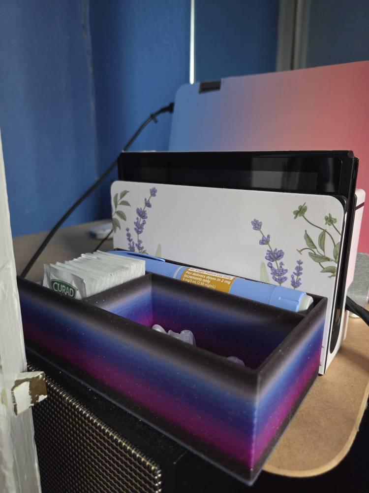 A simple organizer meant for a single injection pen and alcohol swabs and pen needles. Keep everything you need in one convenient (and cute!) place!