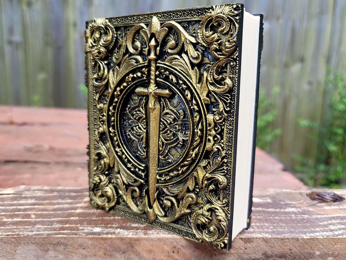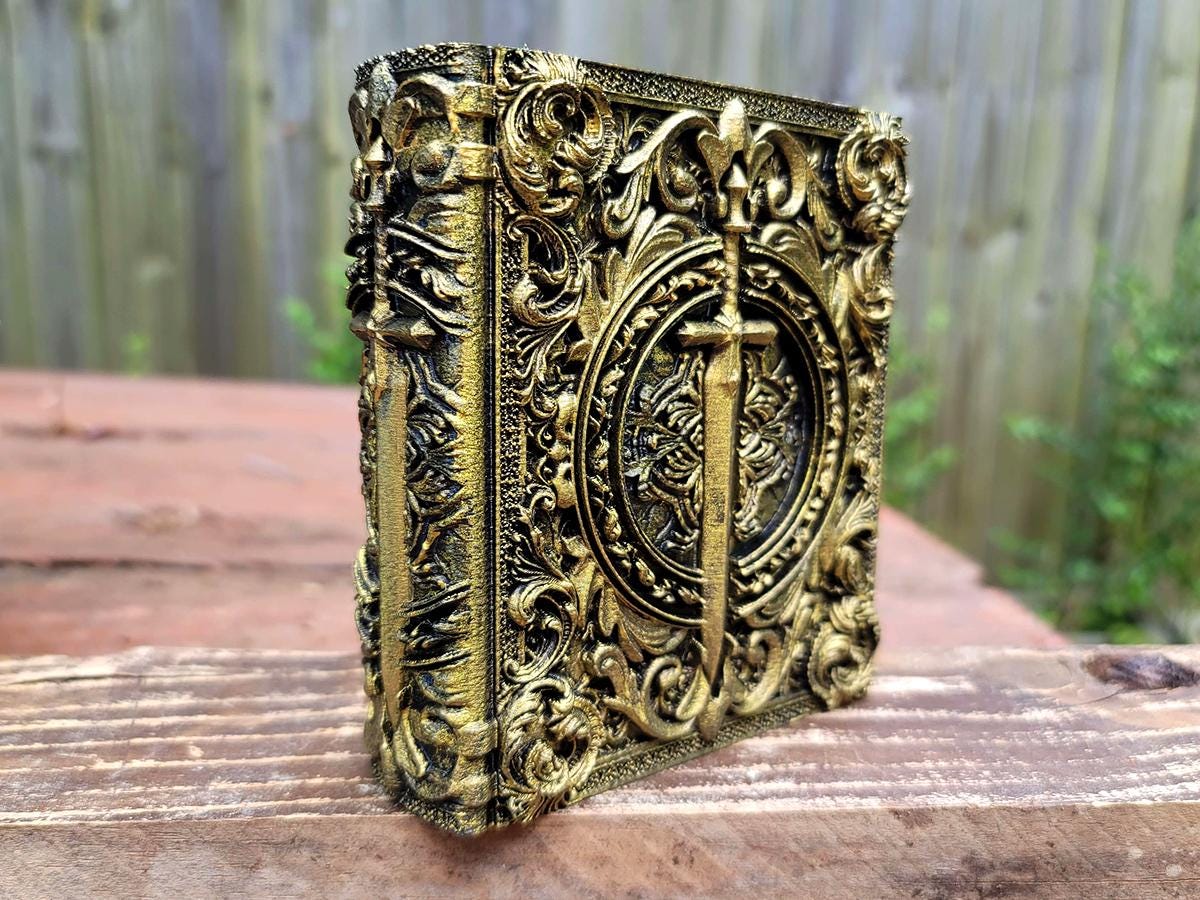 Great for book nerds, gamers, or anyone who has ever wanted to hide a special treasure inside a beautiful book, these ancient tomes look great on your shelf AND make great storage! The pages slide out of the top revealing a hiding space within, then pop back in to be (very gently) held in place with magnets.