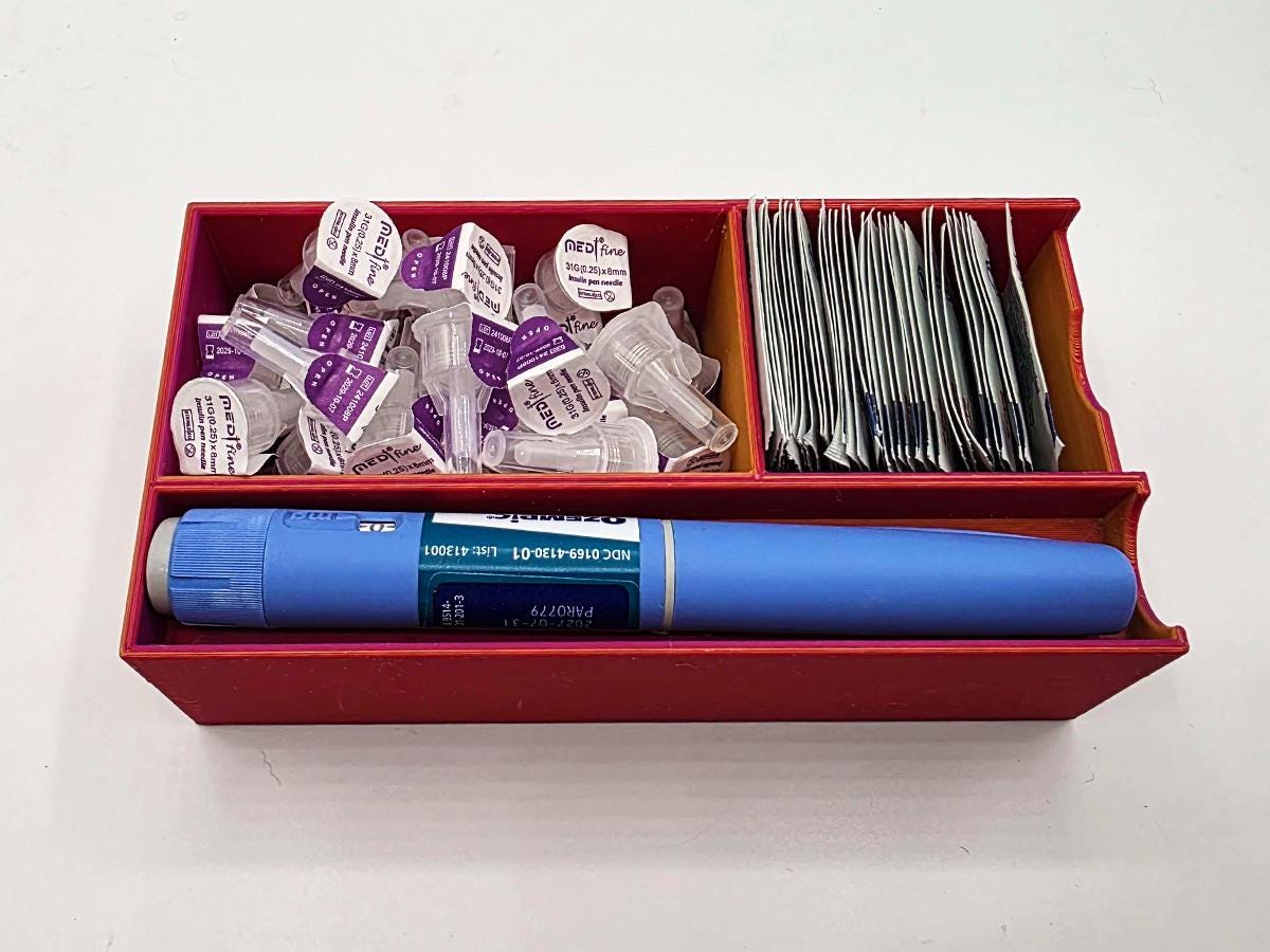 (While it might fit a mounjaro/zepbound pen, as those are more often single use and have the flared ends, one of the upright organizers is probably best! If you have one of the multiuse style mounjaro/zepbound pens, however, they will work!)