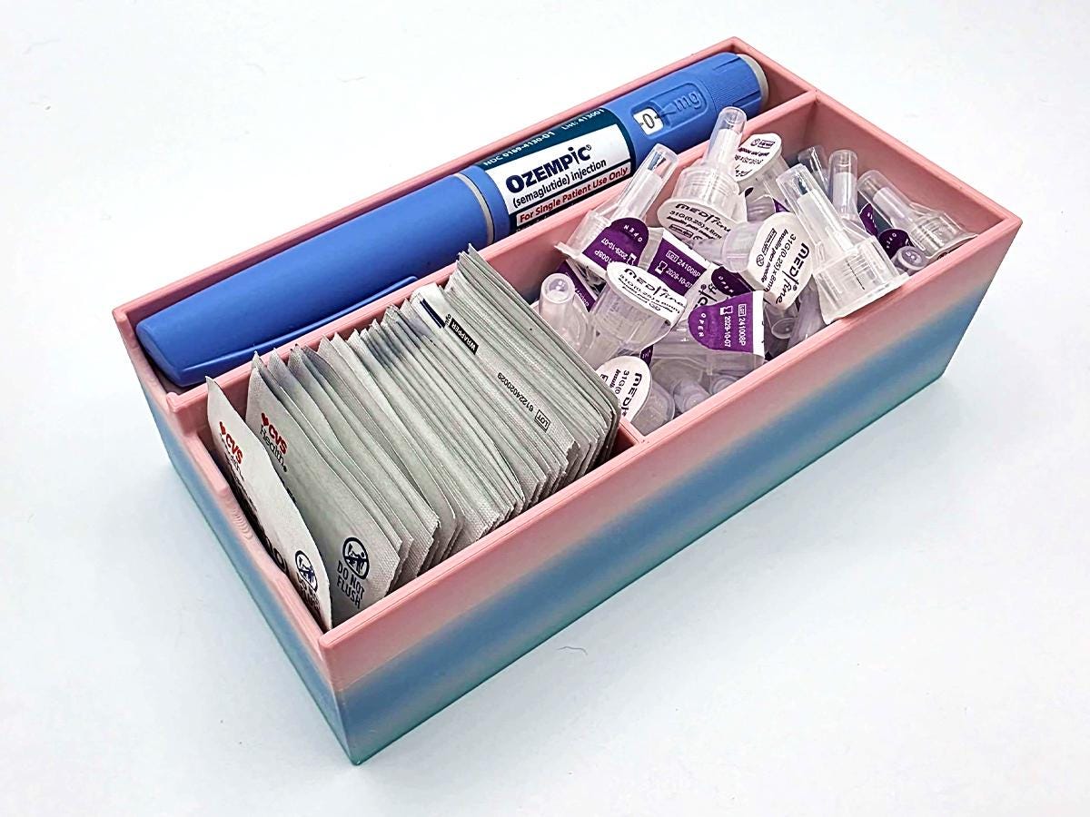 (While it might fit a mounjaro/zepbound pen, as those are more often single use and have the flared ends, one of the upright organizers is probably best! If you have one of the multiuse style mounjaro/zepbound pens, however, they will work!)