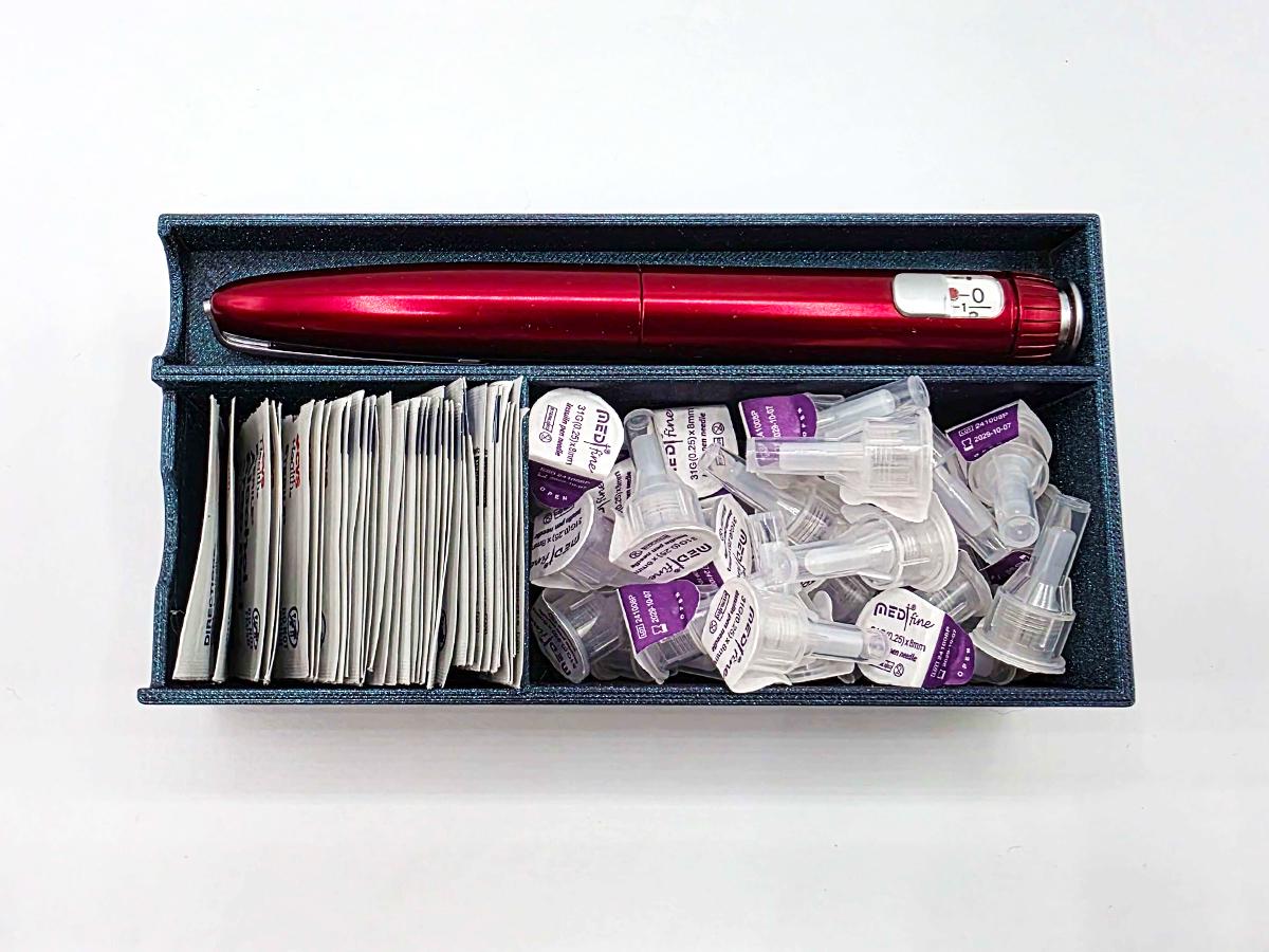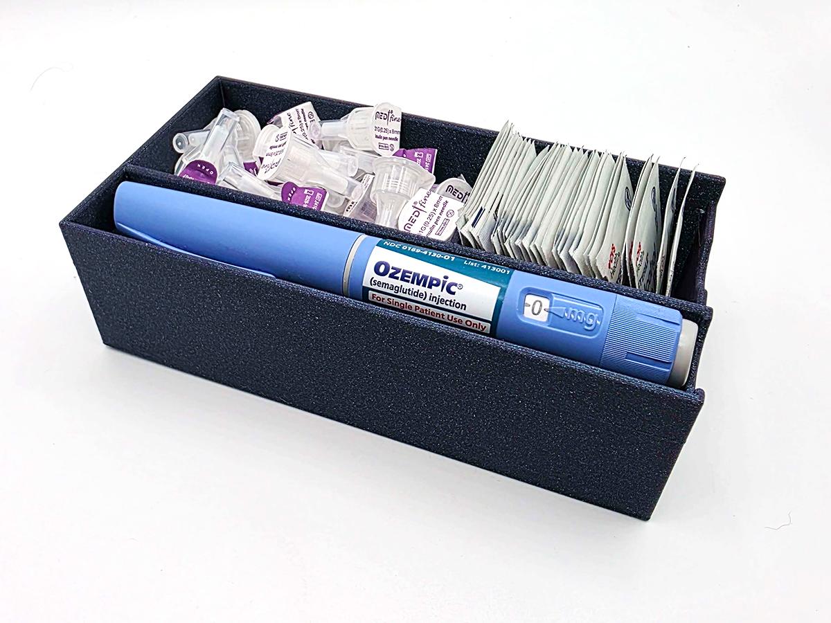 (While it might fit a mounjaro/zepbound pen, as those are more often single use and have the flared ends, one of the upright organizers is probably best! If you have one of the multiuse style mounjaro/zepbound pens, however, they will work!)