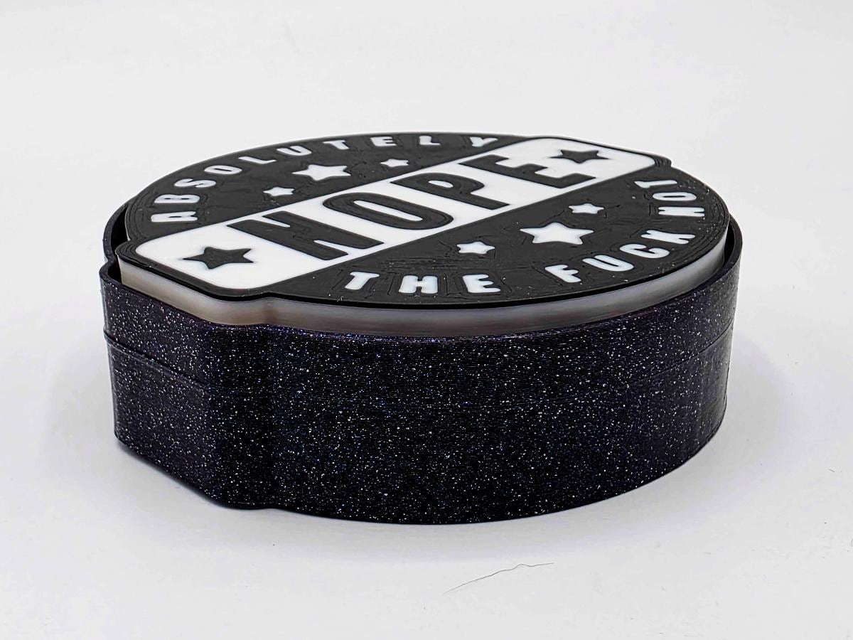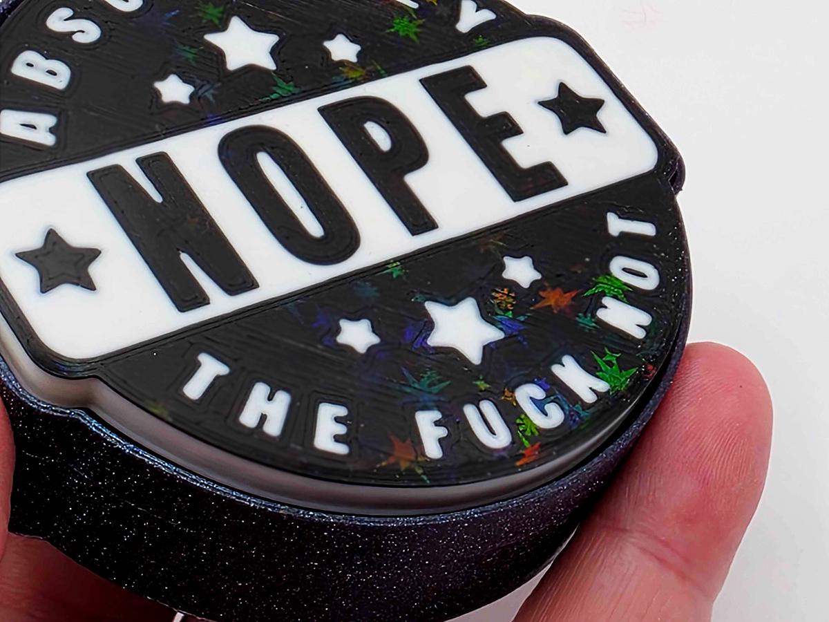 This fidget toy may look simple on the surface, but it is packing a holographic surprise. Bring it into sunlight (or even a bright enough indoor light) and you'll see a rainbow of sparkles to emphasize the message: absolutely the *!&$ not!