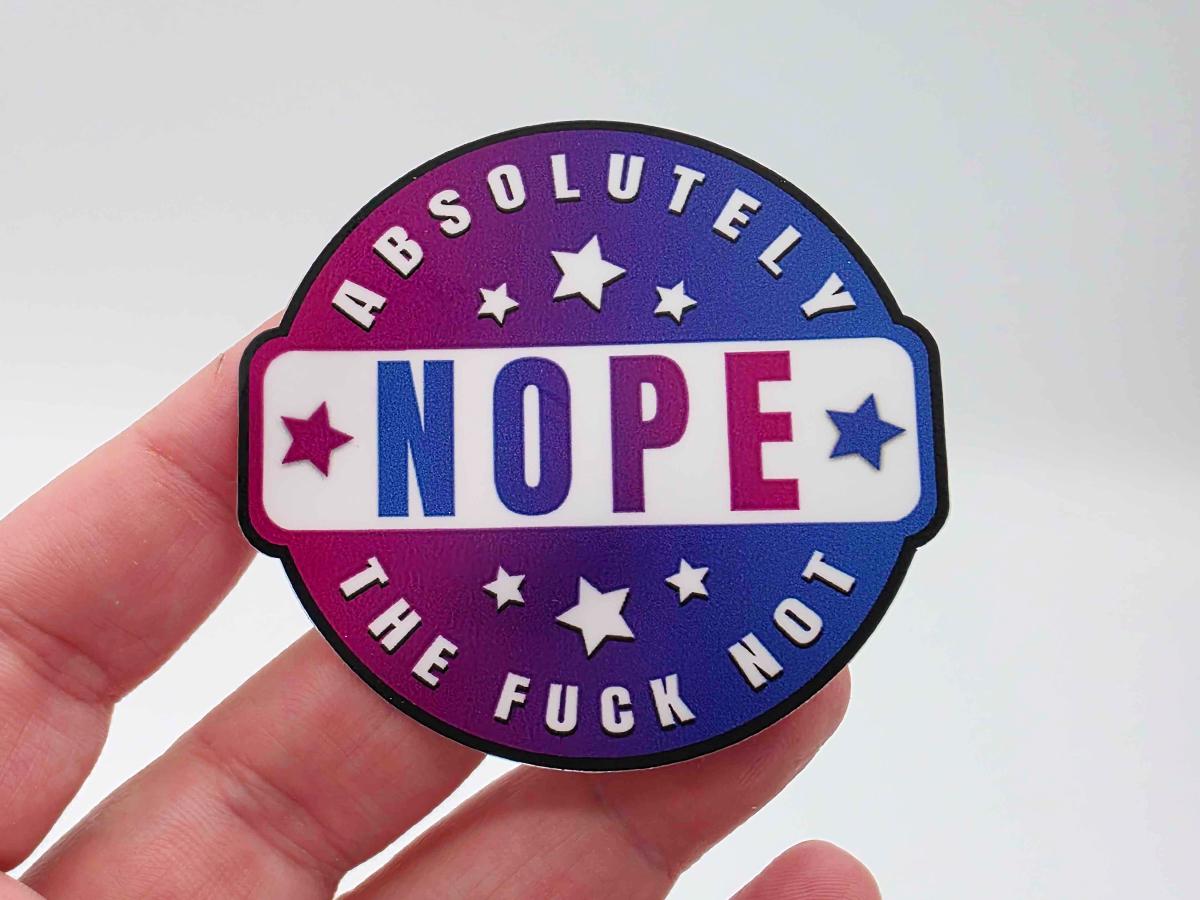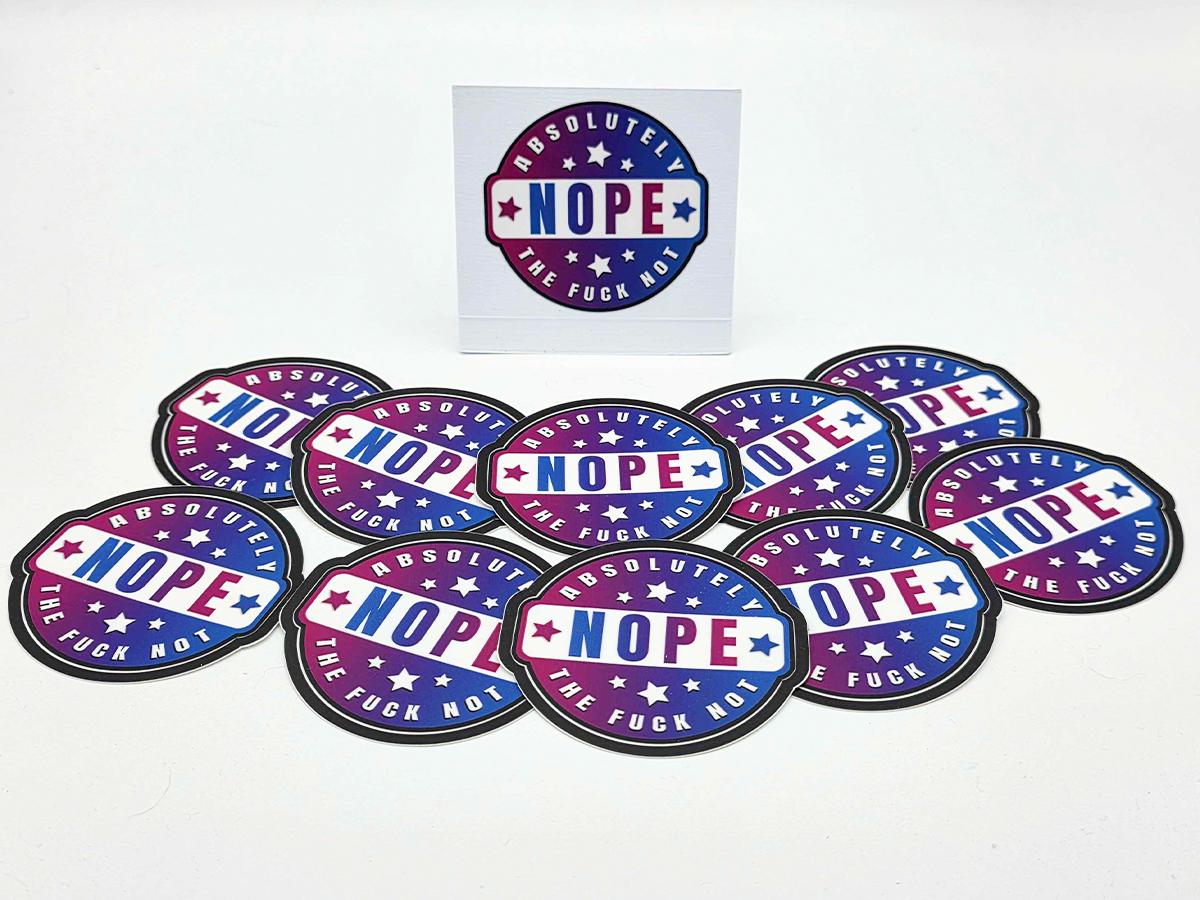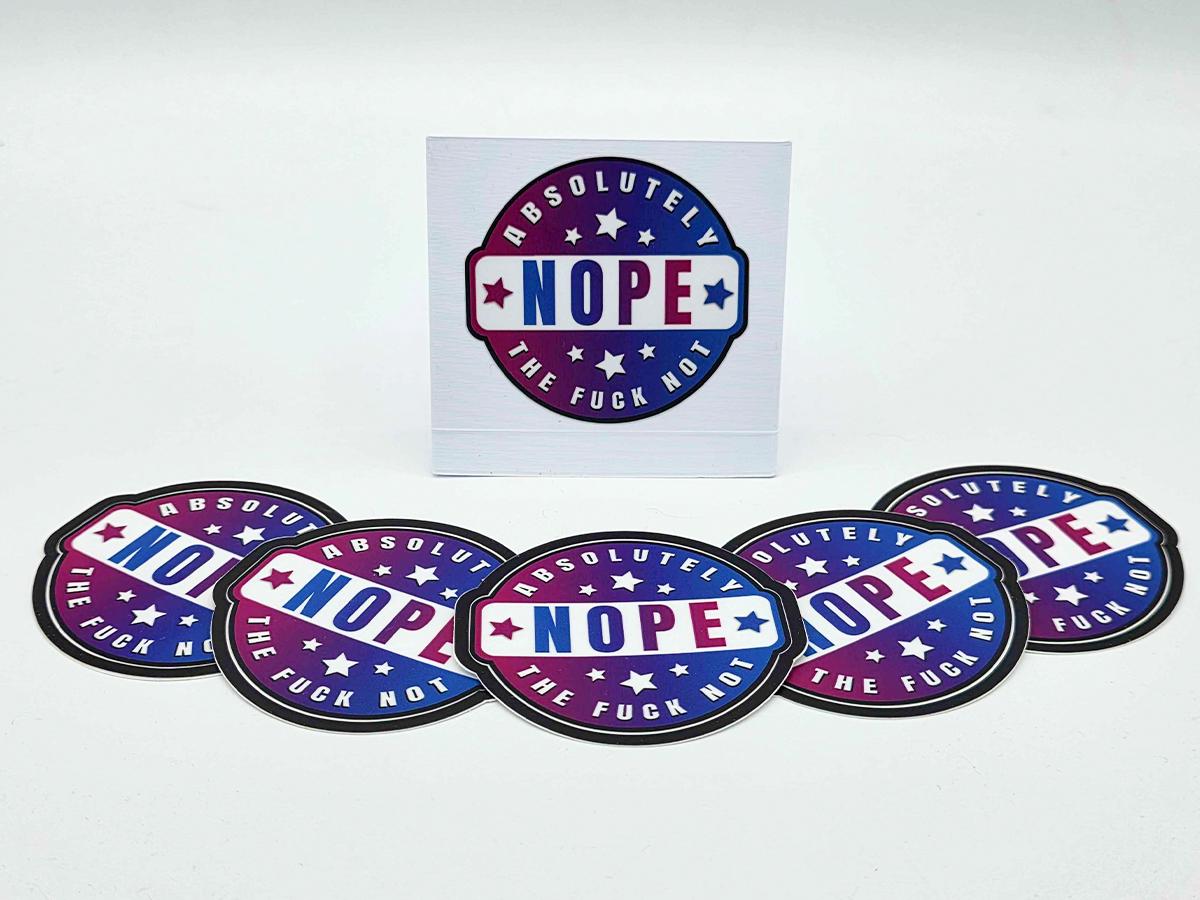 We love our NOPE fidget clicker, but sometimes you need something a little more discrete. For the people who find themselves saying NOPE a lot, we now have the NOPE stickers!