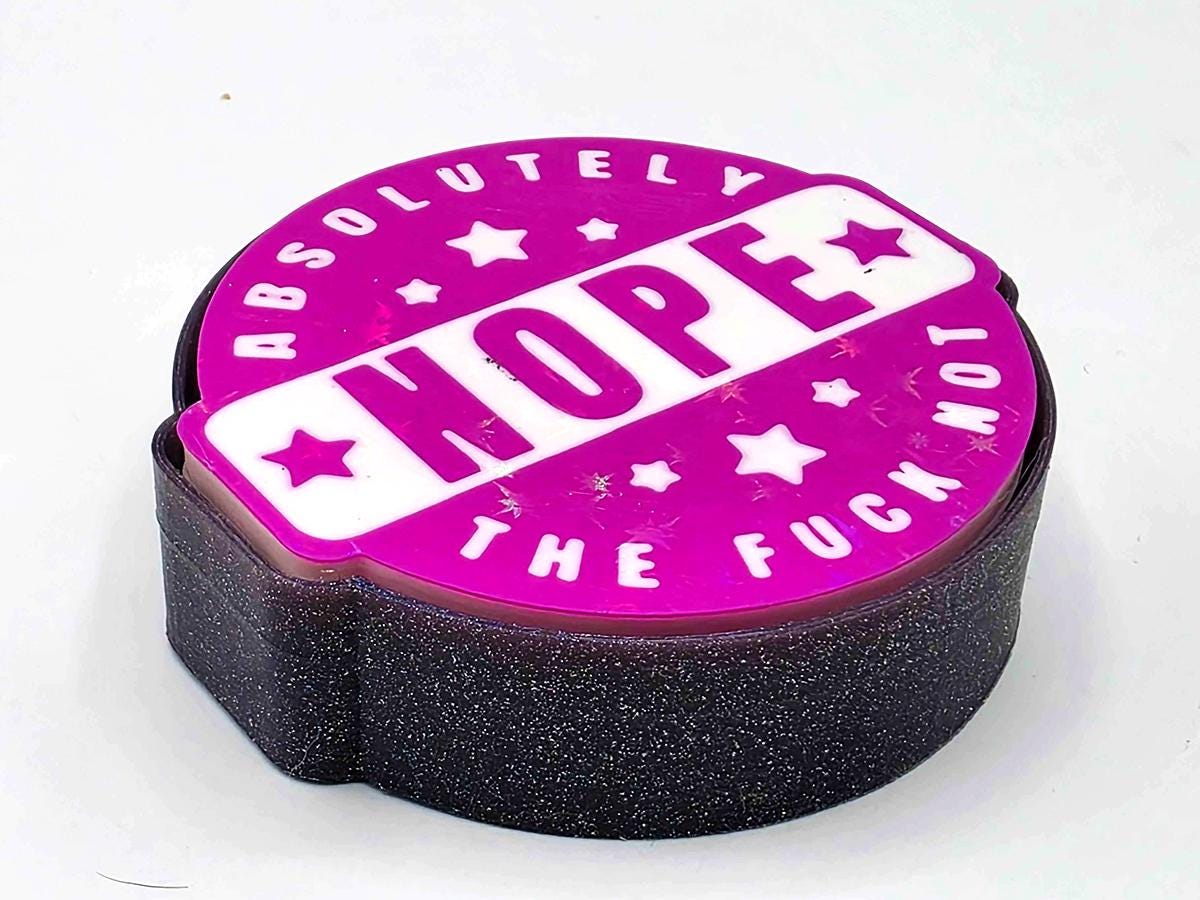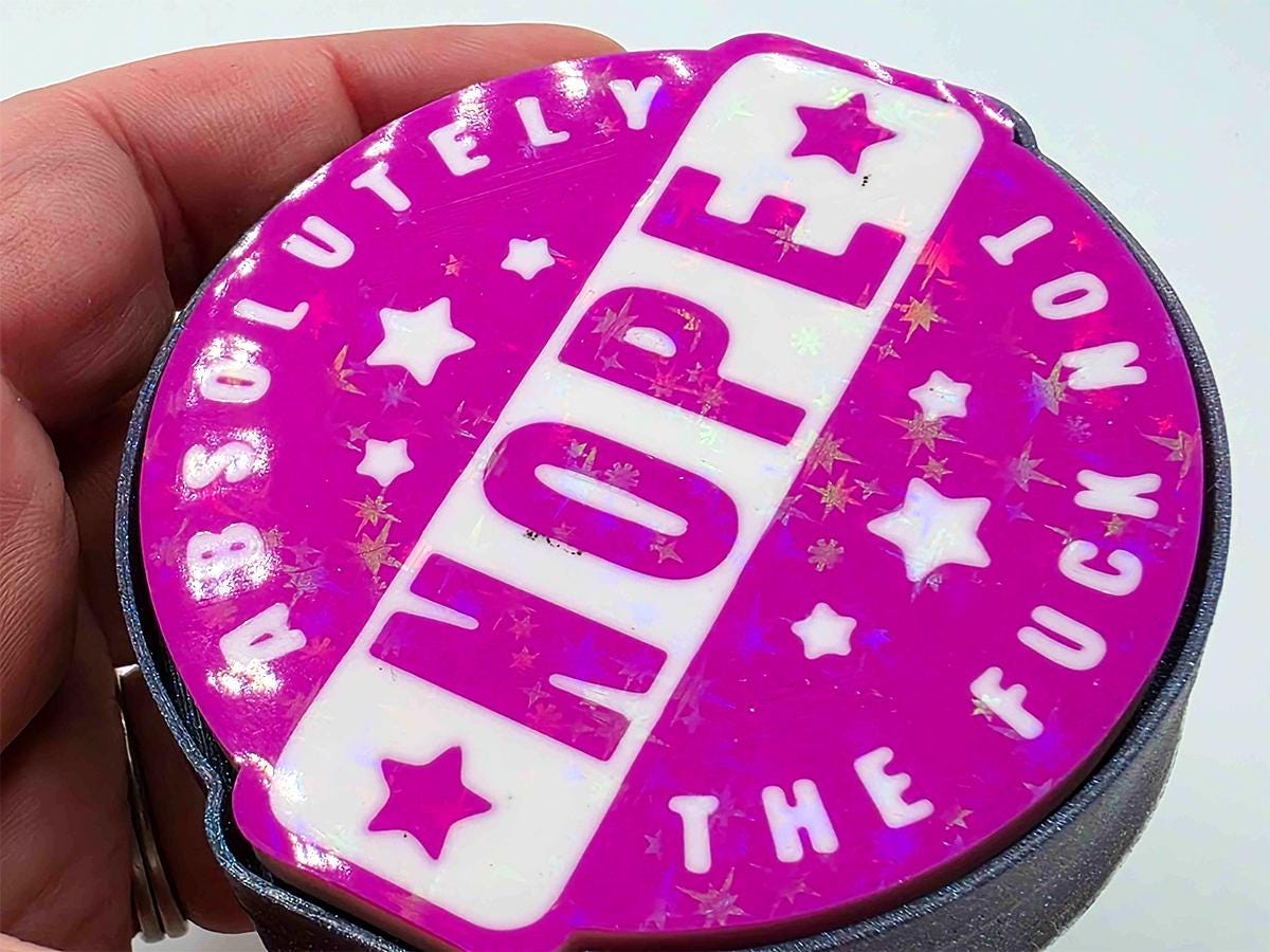 This fidget toy may look simple on the surface, but it is packing a holographic surprise. Bring it into sunlight (or even a bright enough indoor light) and you'll see a rainbow of sparkles to emphasize the message: absolutely the *!&$ not!