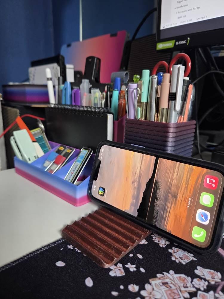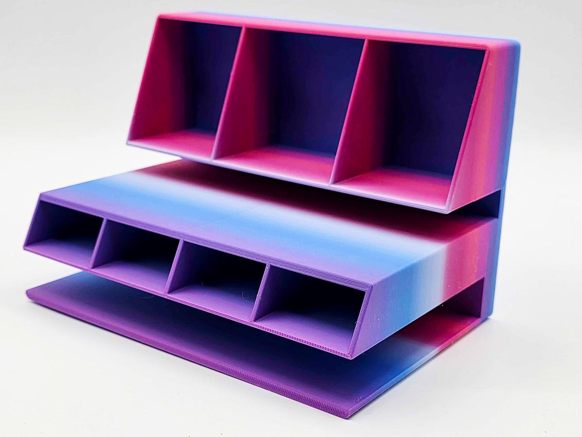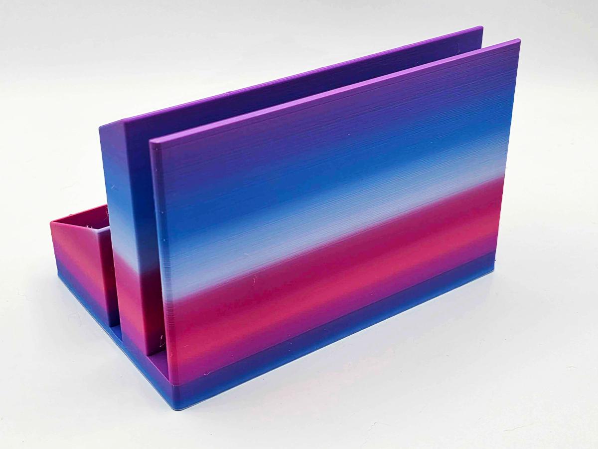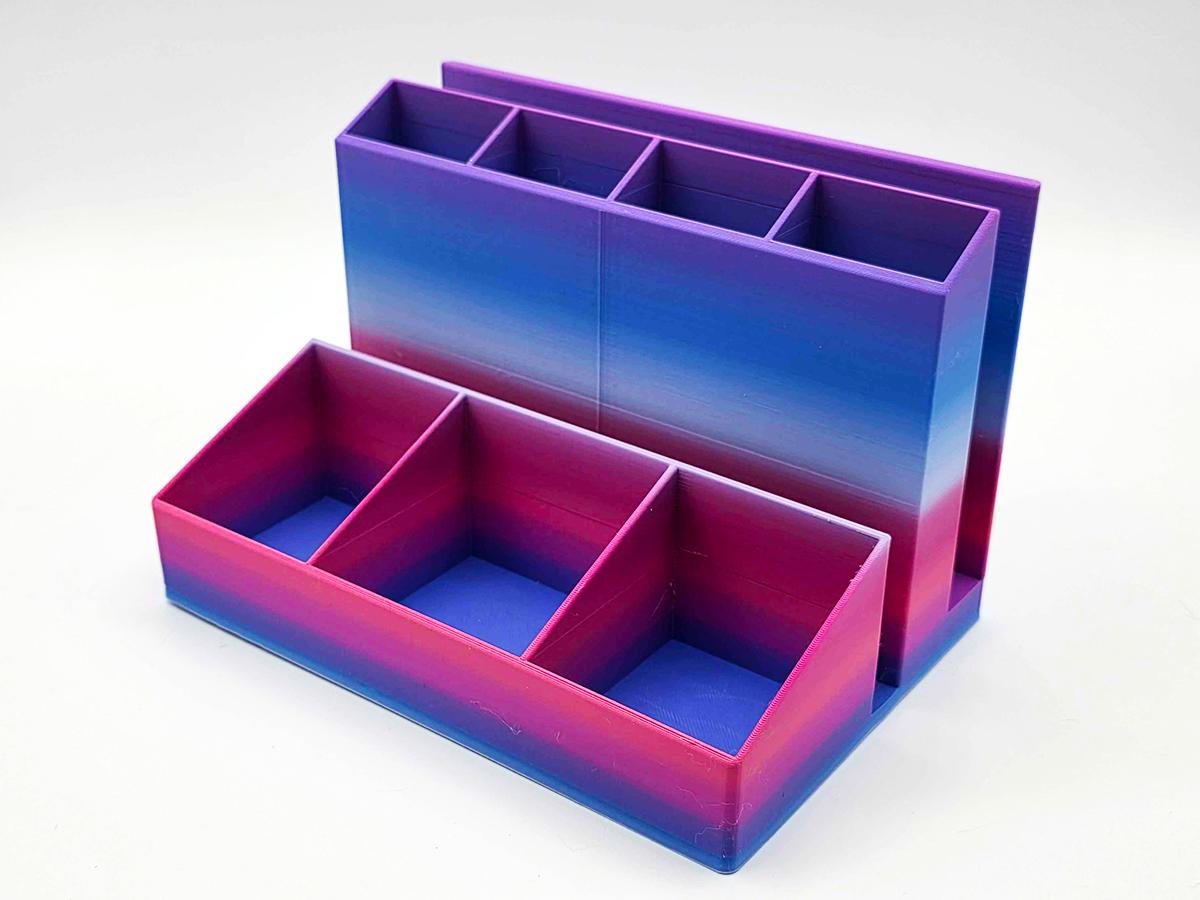 A basic organizer for your desk designed to hold a bullet journal or planner (5.5x8 or 6x9 fit best, but larger notebooks will probably work as well!) Because of the nature of gradients, your organizer may not have the colors start & stop on the same places on the organizer, but you will get the full color spectrum!