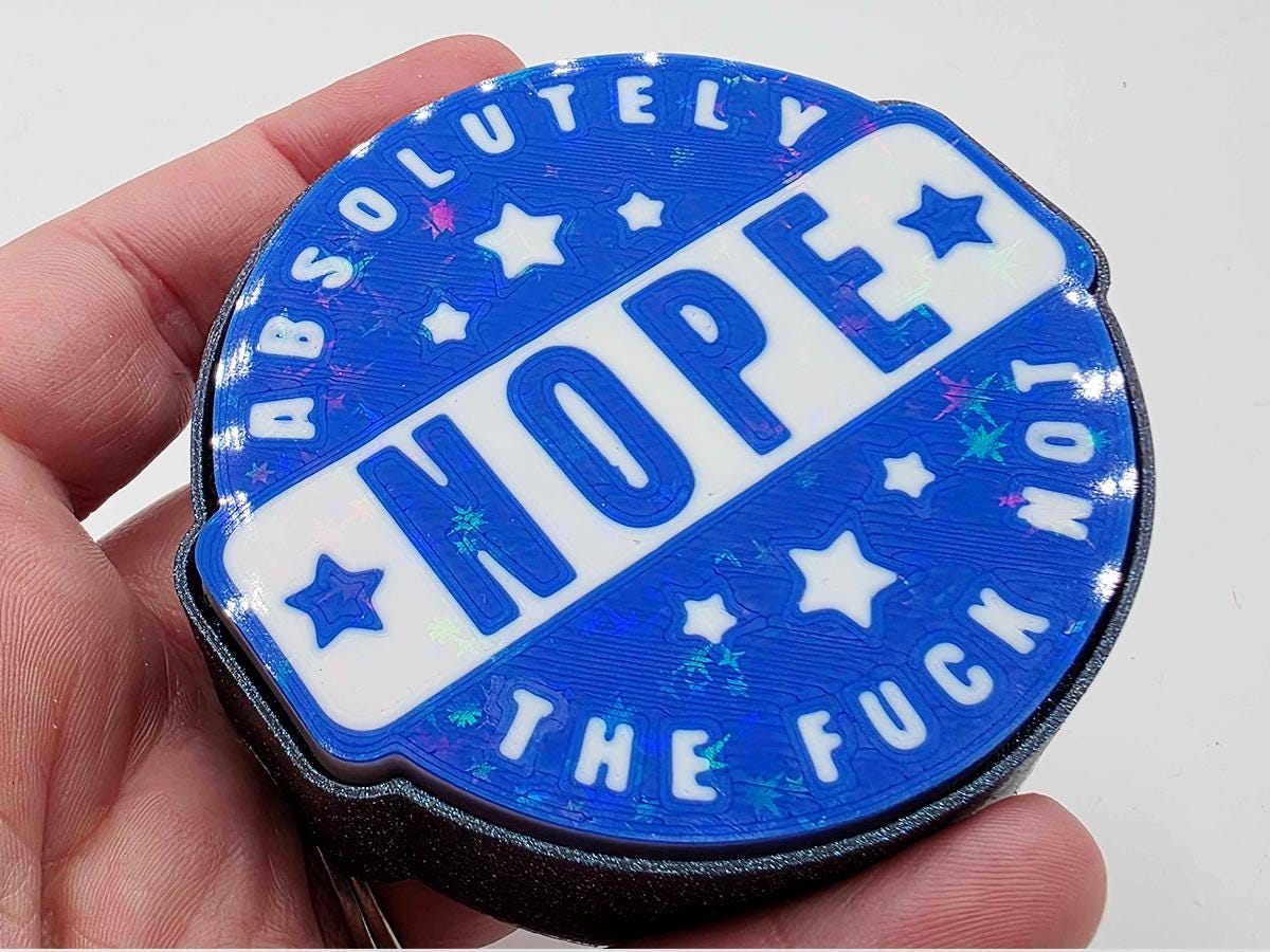 This fidget toy may look simple on the surface, but it is packing a holographic surprise. Bring it into sunlight (or even a bright enough indoor light) and you'll see a rainbow of sparkles to emphasize the message: absolutely the *!&$ not!