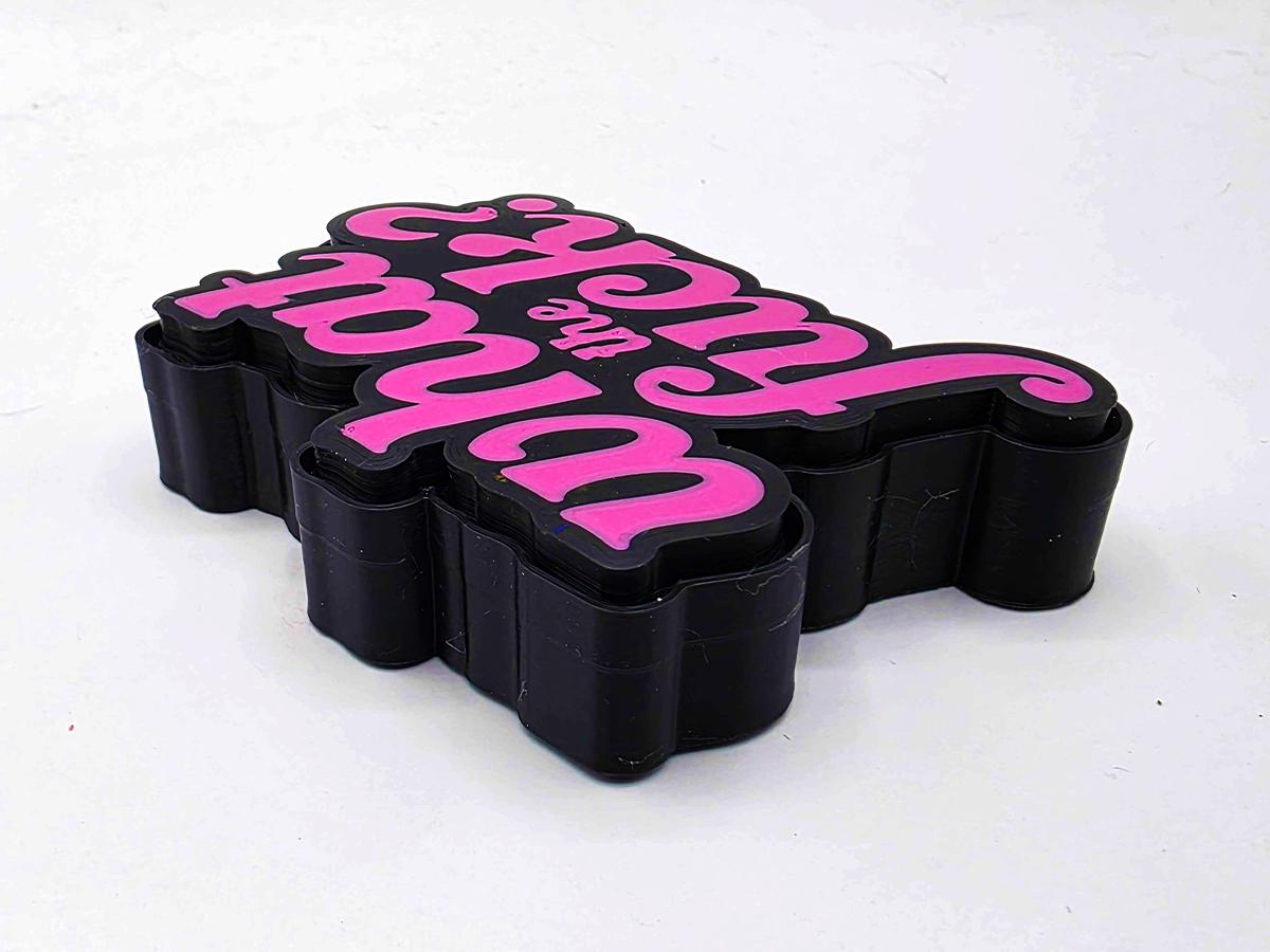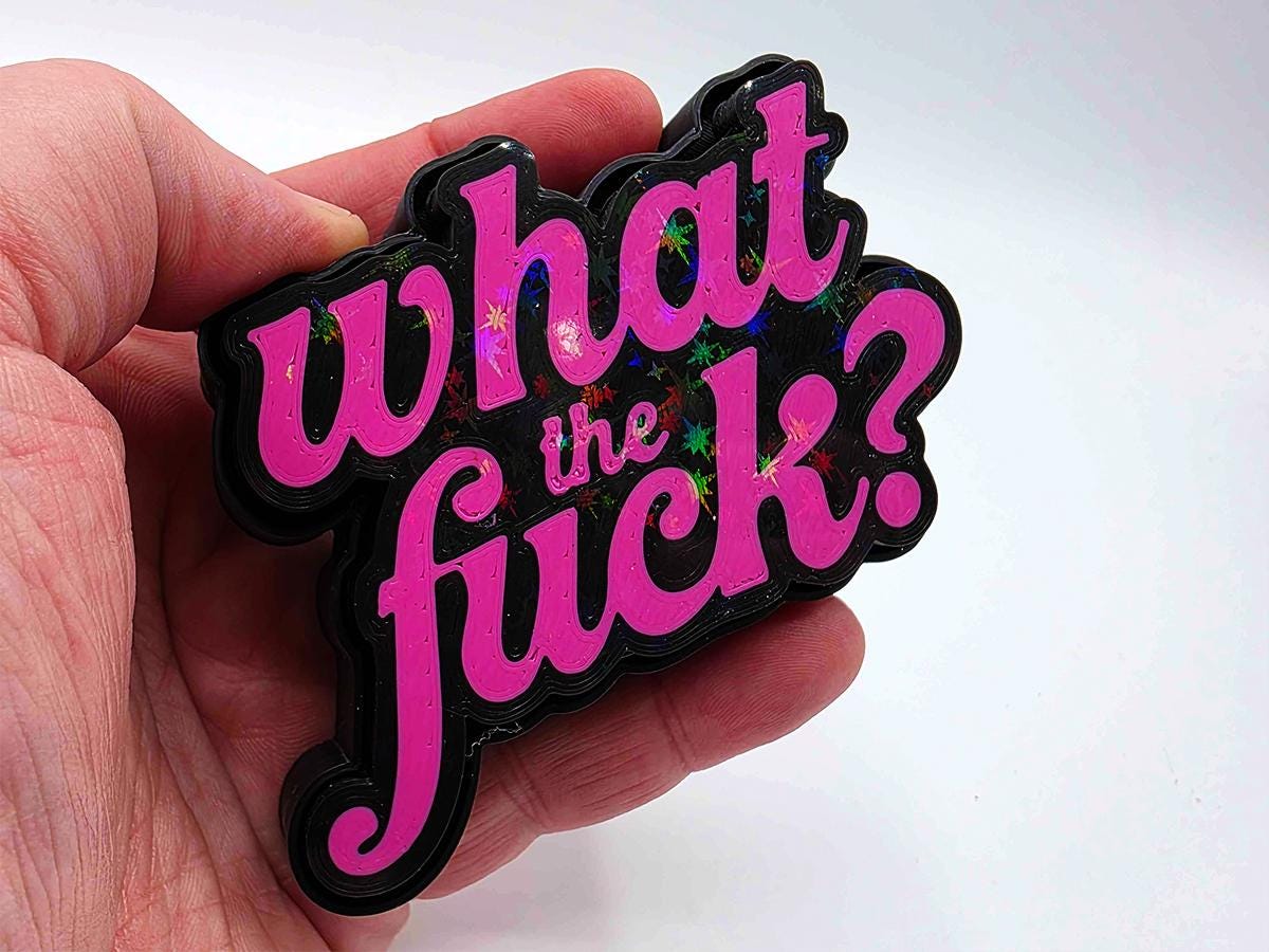 This fidget toy may look simple on the surface, but it is packing a holographic surprise. Bring it into sunlight (or even a bright enough indoor light) and you'll see a rainbow of sparkles to emphasize the message: what the *!&$????