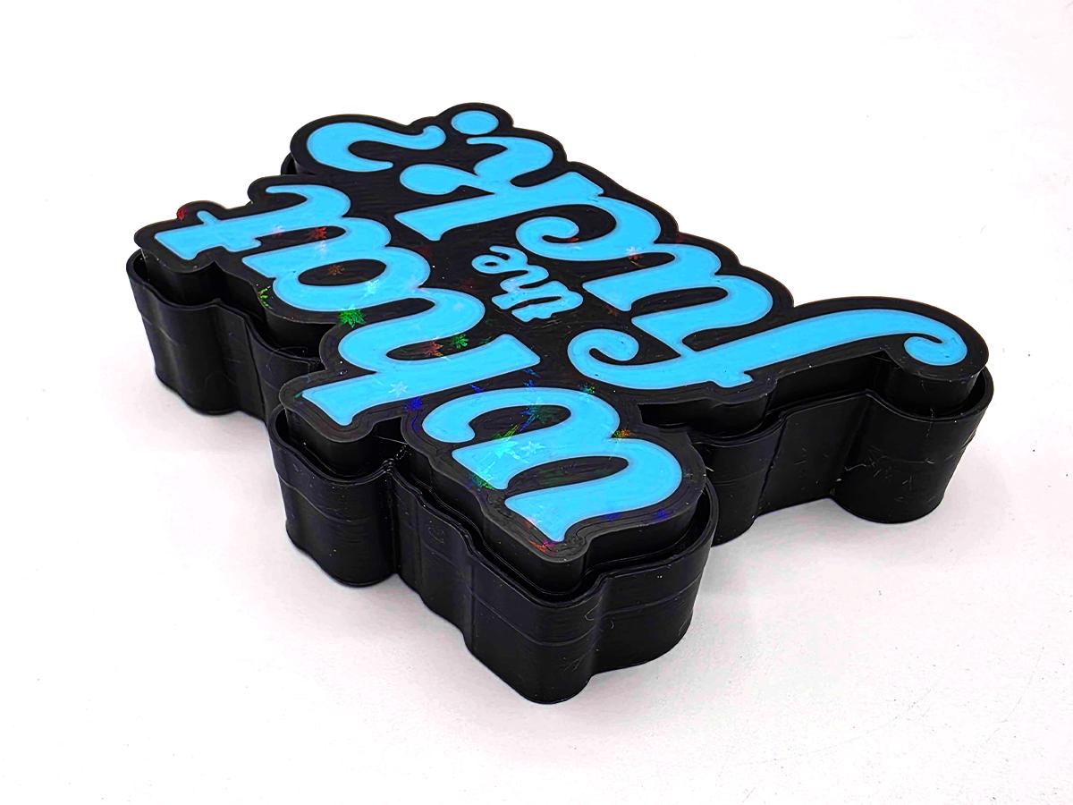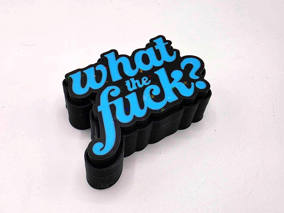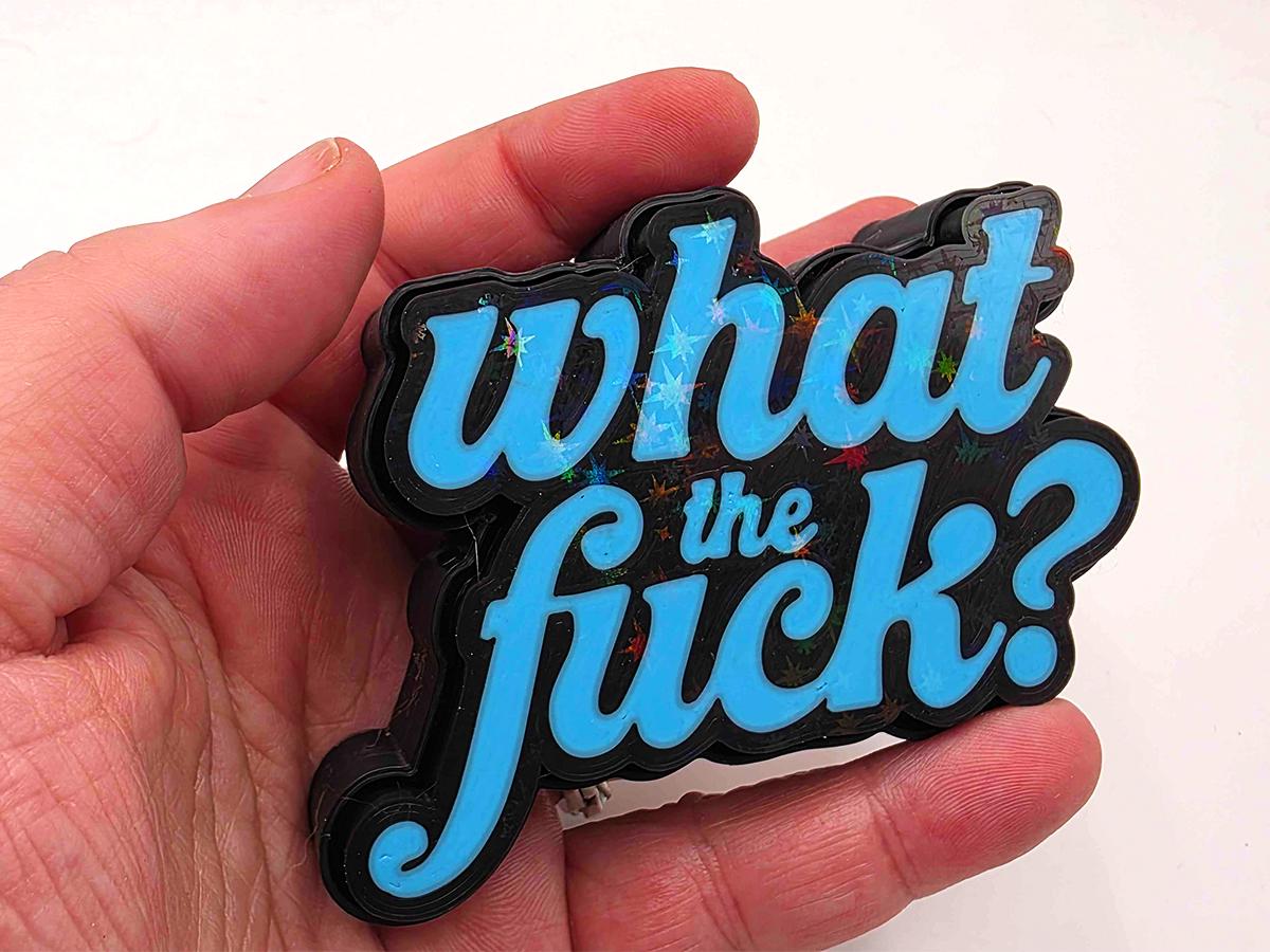 This fidget toy may look simple on the surface, but it is packing a holographic surprise. Bring it into sunlight (or even a bright enough indoor light) and you'll see a rainbow of sparkles to emphasize the message: what the *!&$????