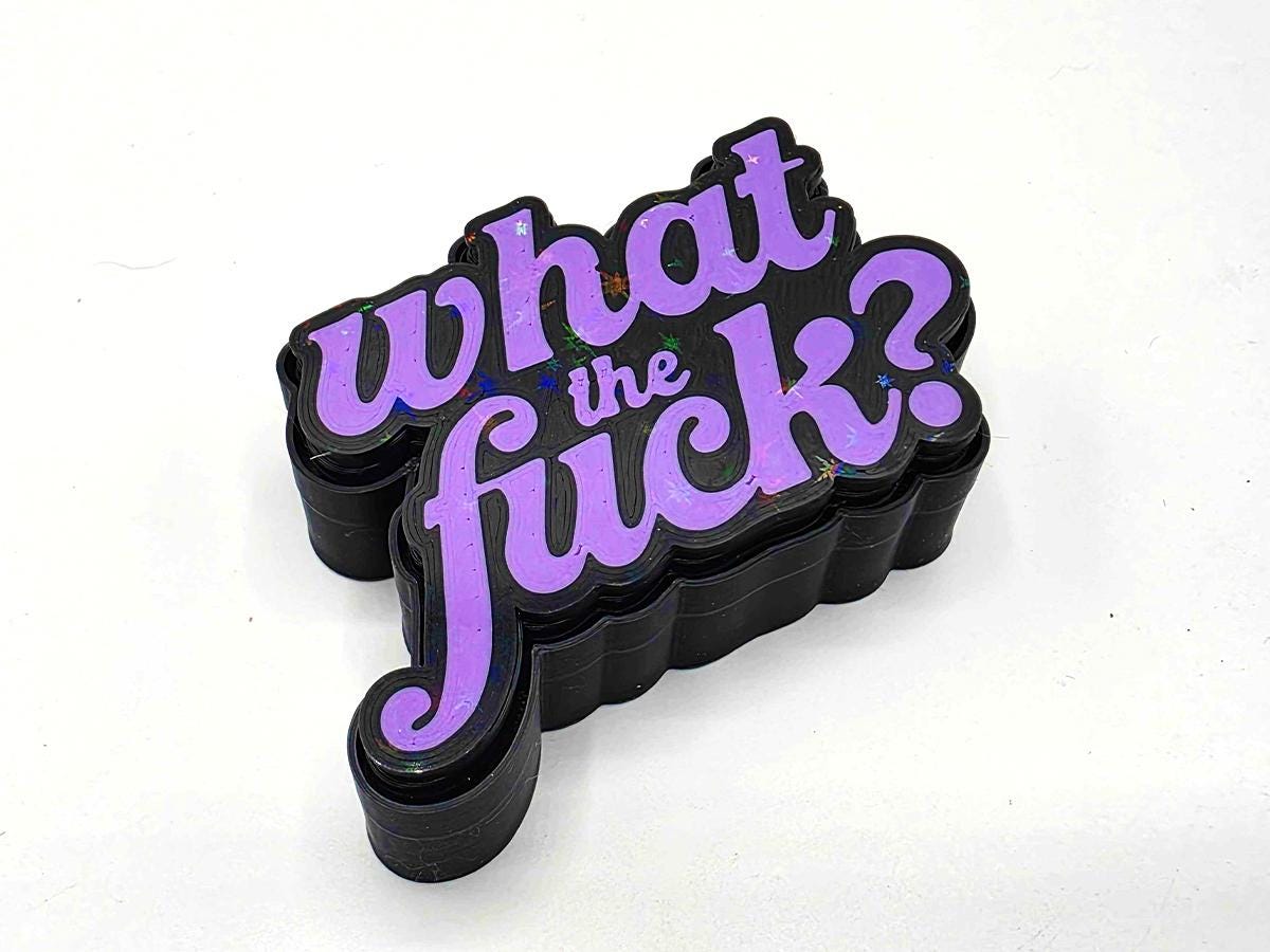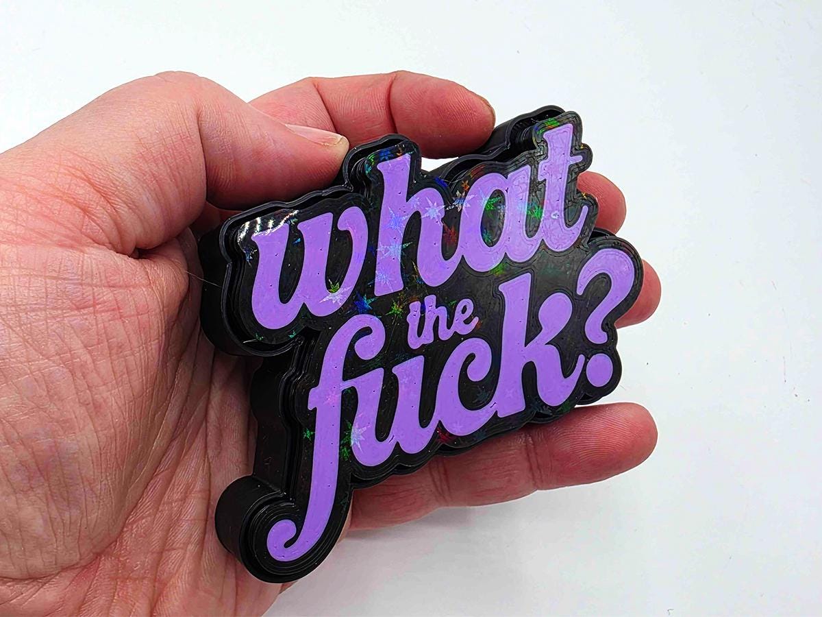 This fidget toy may look simple on the surface, but it is packing a holographic surprise. Bring it into sunlight (or even a bright enough indoor light) and you'll see a rainbow of sparkles to emphasize the message: what the *!&$????
