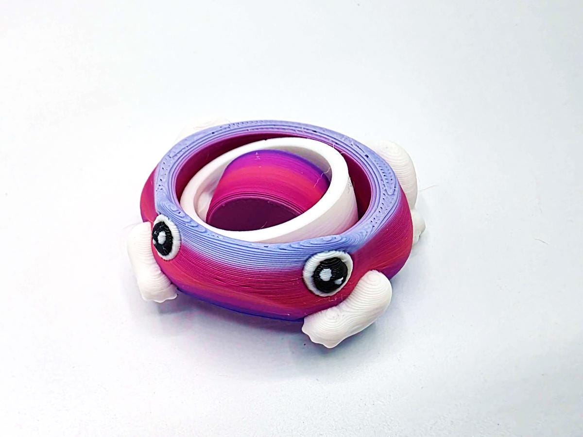 Keep your fingers busy with this adorable gyroscopic fidget toy! The friendly frog has two inner rings that will spin in opposite directions, making for endless fun.