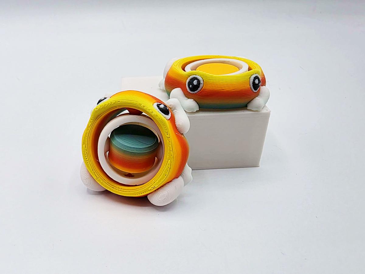 Keep your fingers busy with this adorable gyroscopic fidget toy! The friendly frog has two inner rings that will spin in opposite directions, making for endless fun.