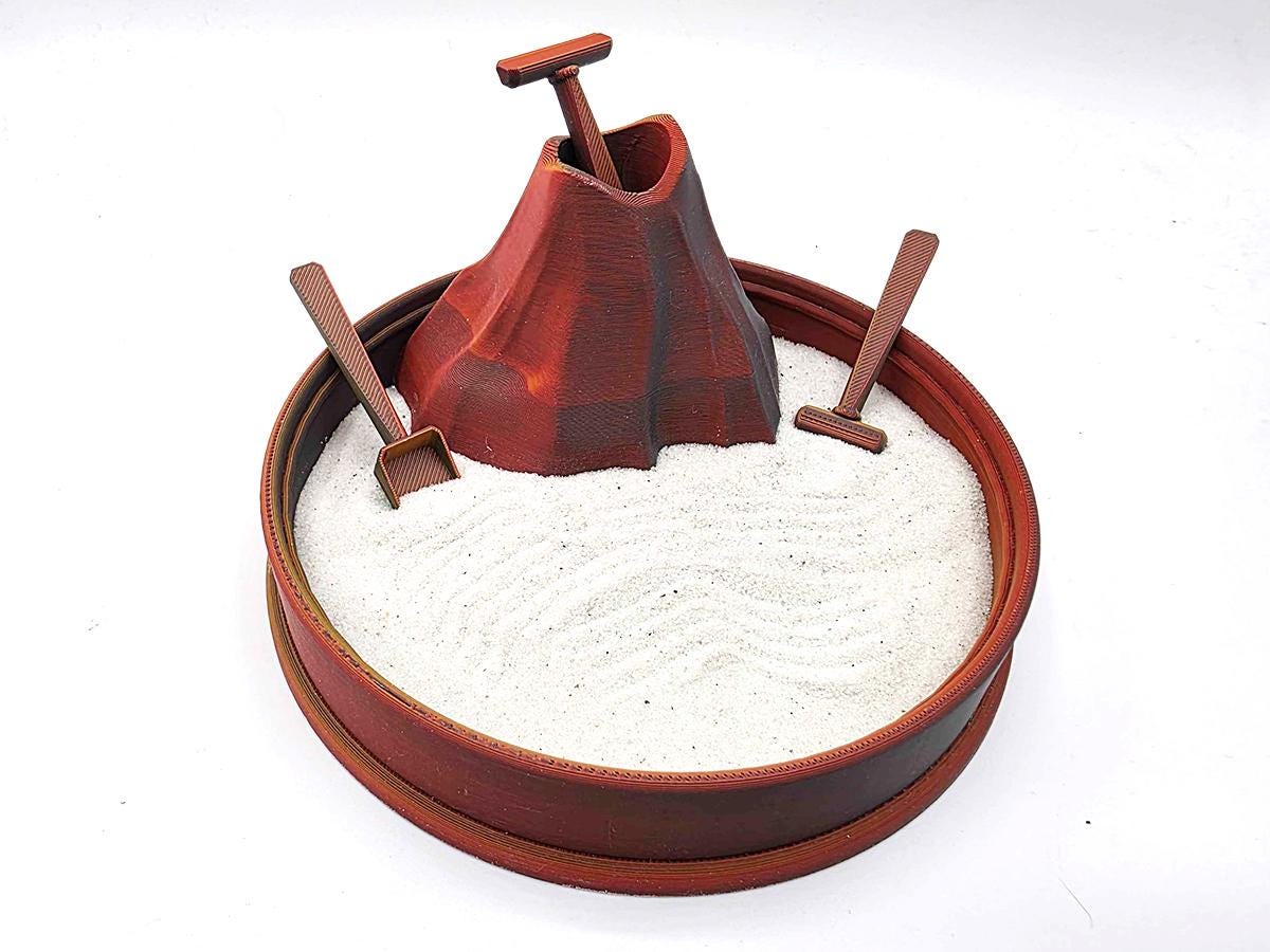 * A meditation garden with its own prehistoric volcano--which happens to be a perfect place to store your tools.