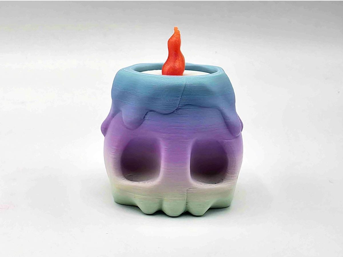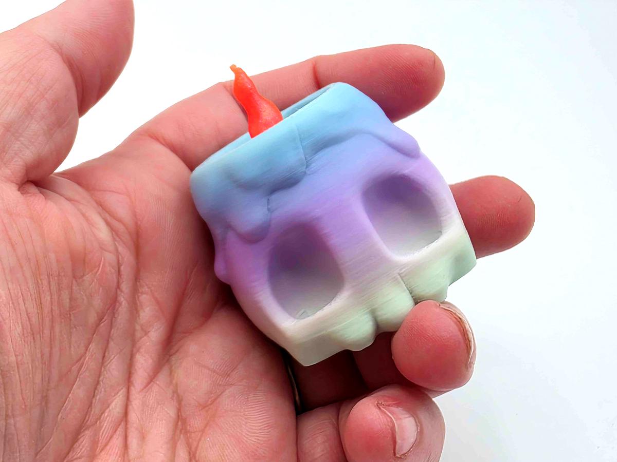 This cute little skull fits perfectly in your hand, and this time you can play with fire! Literally! When you press down on the glittery orange flame, you'll get that satisfying clicky sound that is so fun to hear!