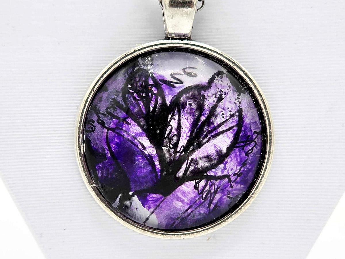 The pendant is 1" x 1" painted glass cabochon.