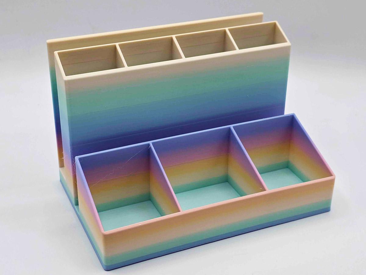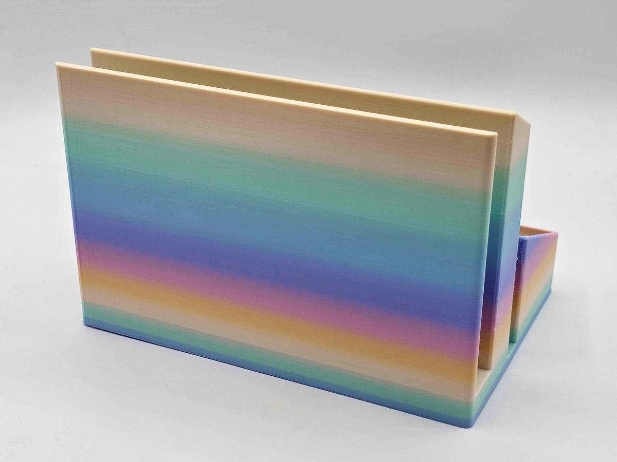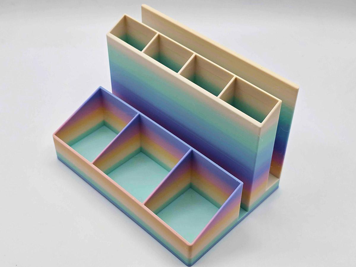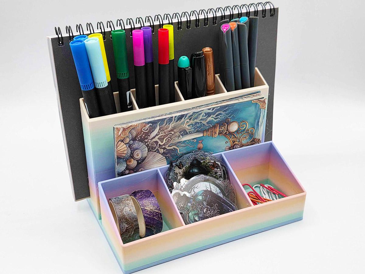 A basic organizer for your desk designed to hold a bullet journal or planner (5.5x8 or 6x9 fit best, but larger notebooks will probably work as well!) Because of the nature of gradients, your organizer may not have the colors start & stop on the same places on the organizer, but you will get the full color spectrum!