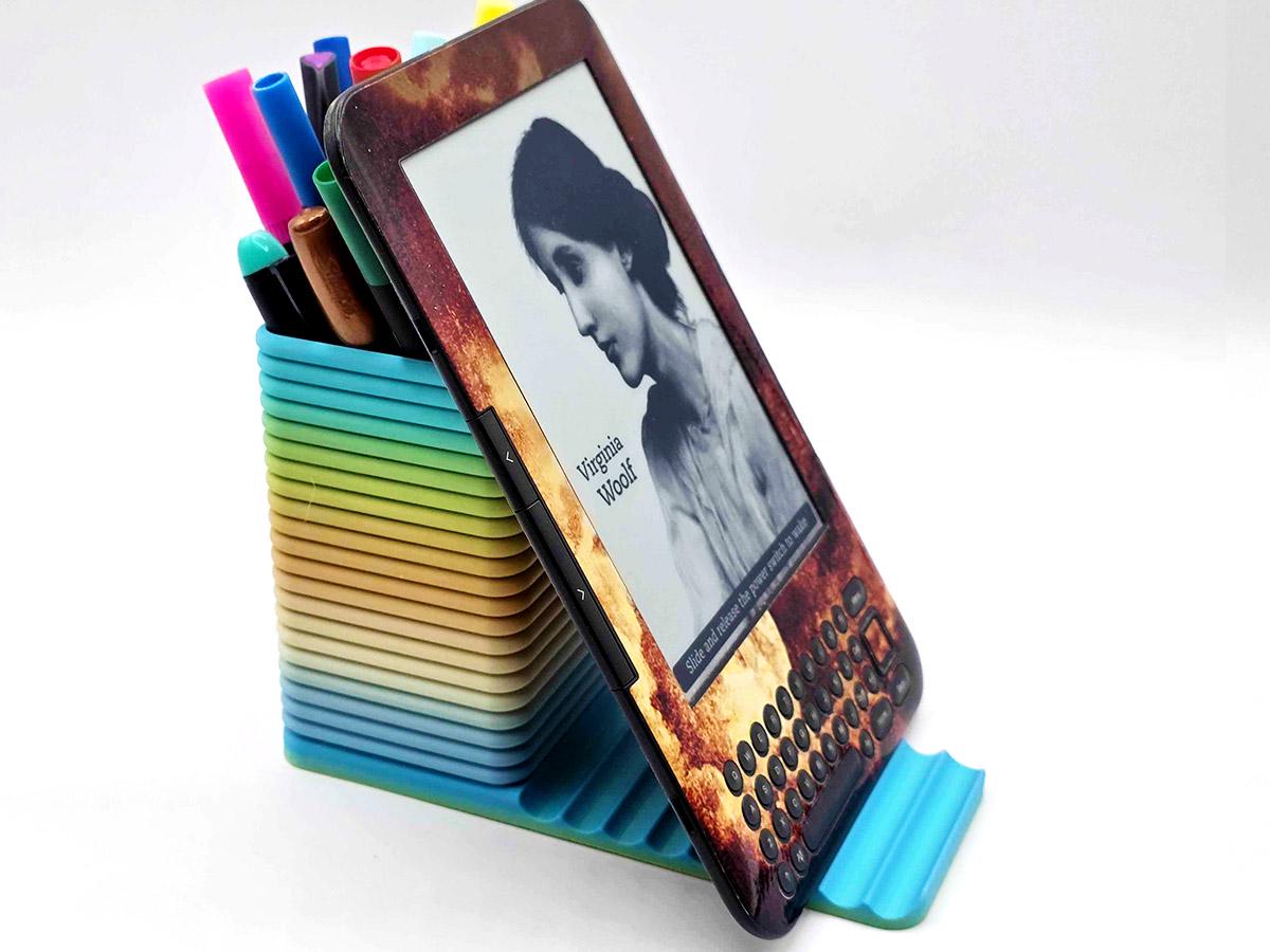 This desk organizer doesn't just hold your pens--it will hold your phone or your ereader as well!