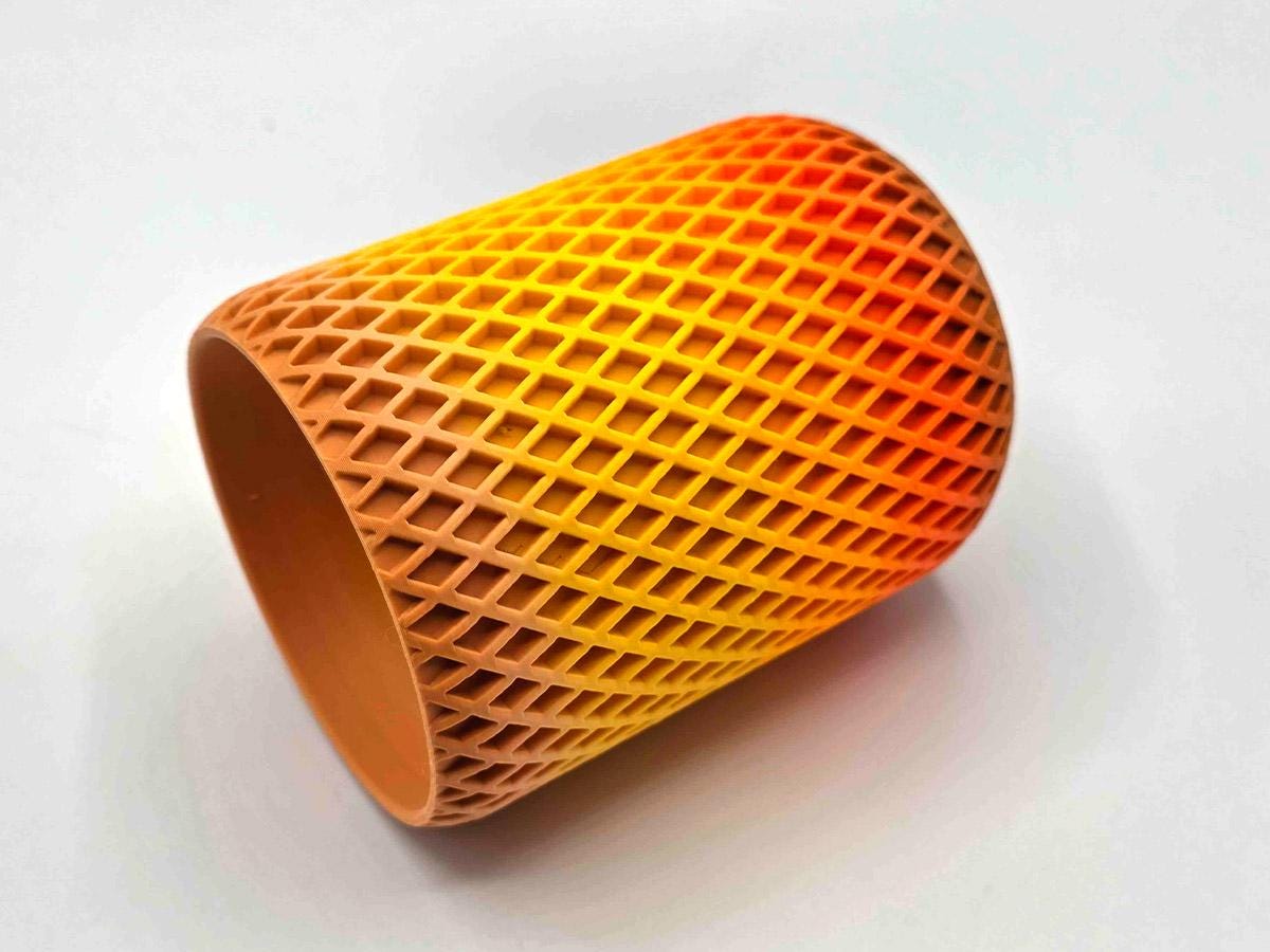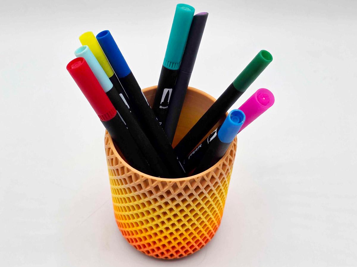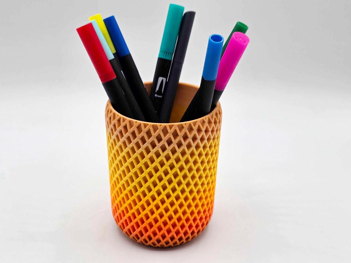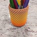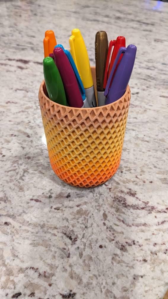 This pen cup is super sturdy and ready to hold all the pens, markers, and other desk things you have! It has a gorgeous diamond crosshatch pattern that really lets the gradient shine.