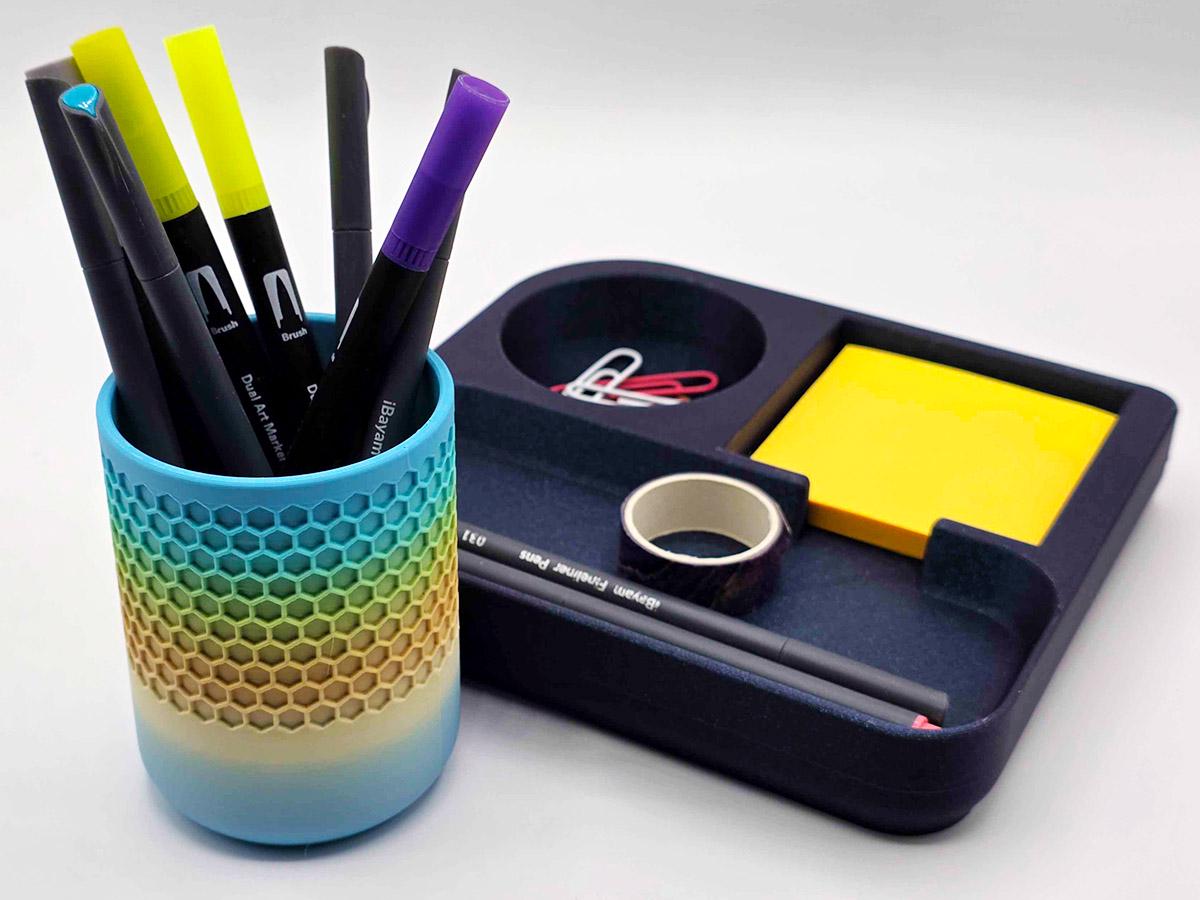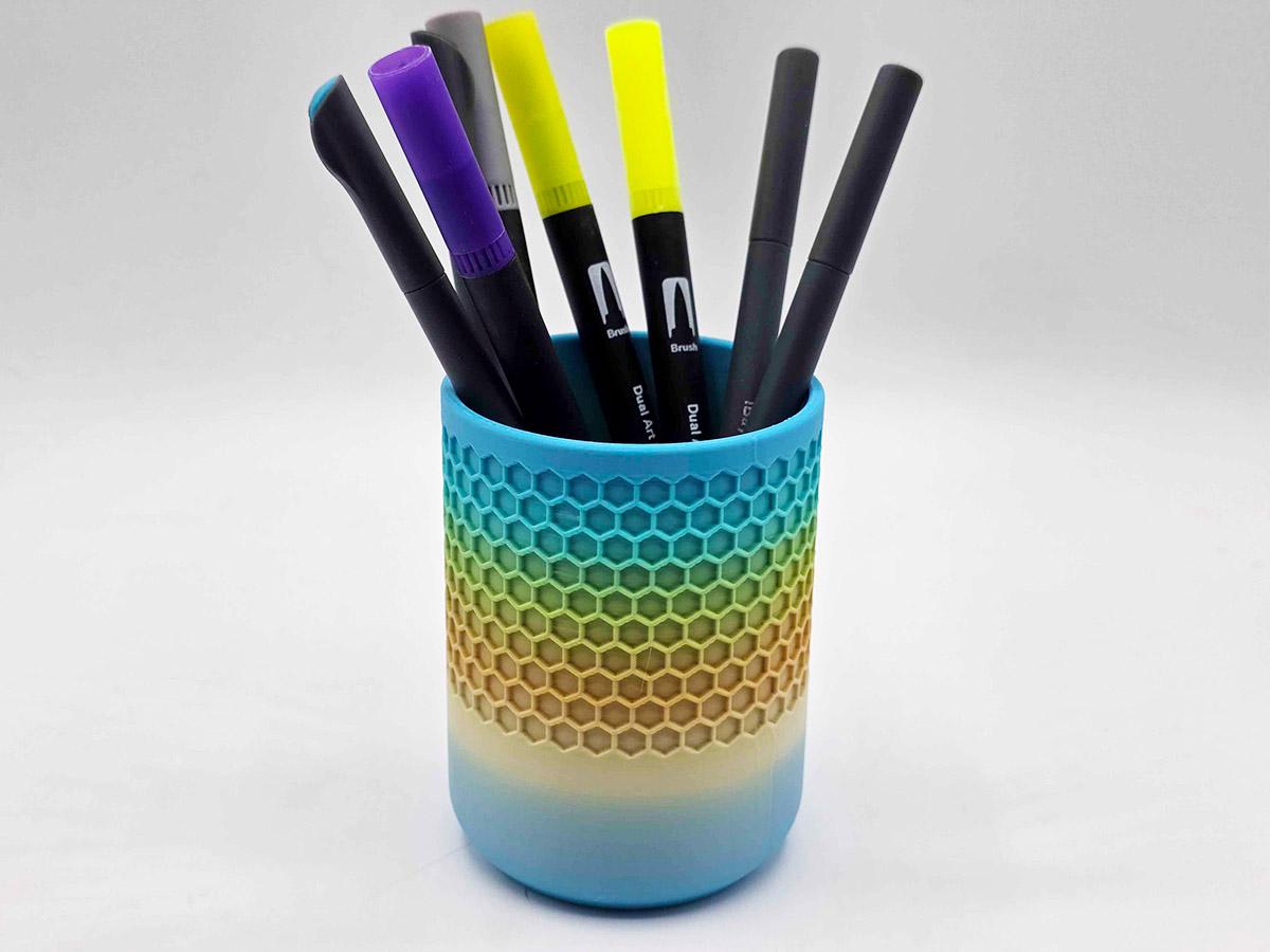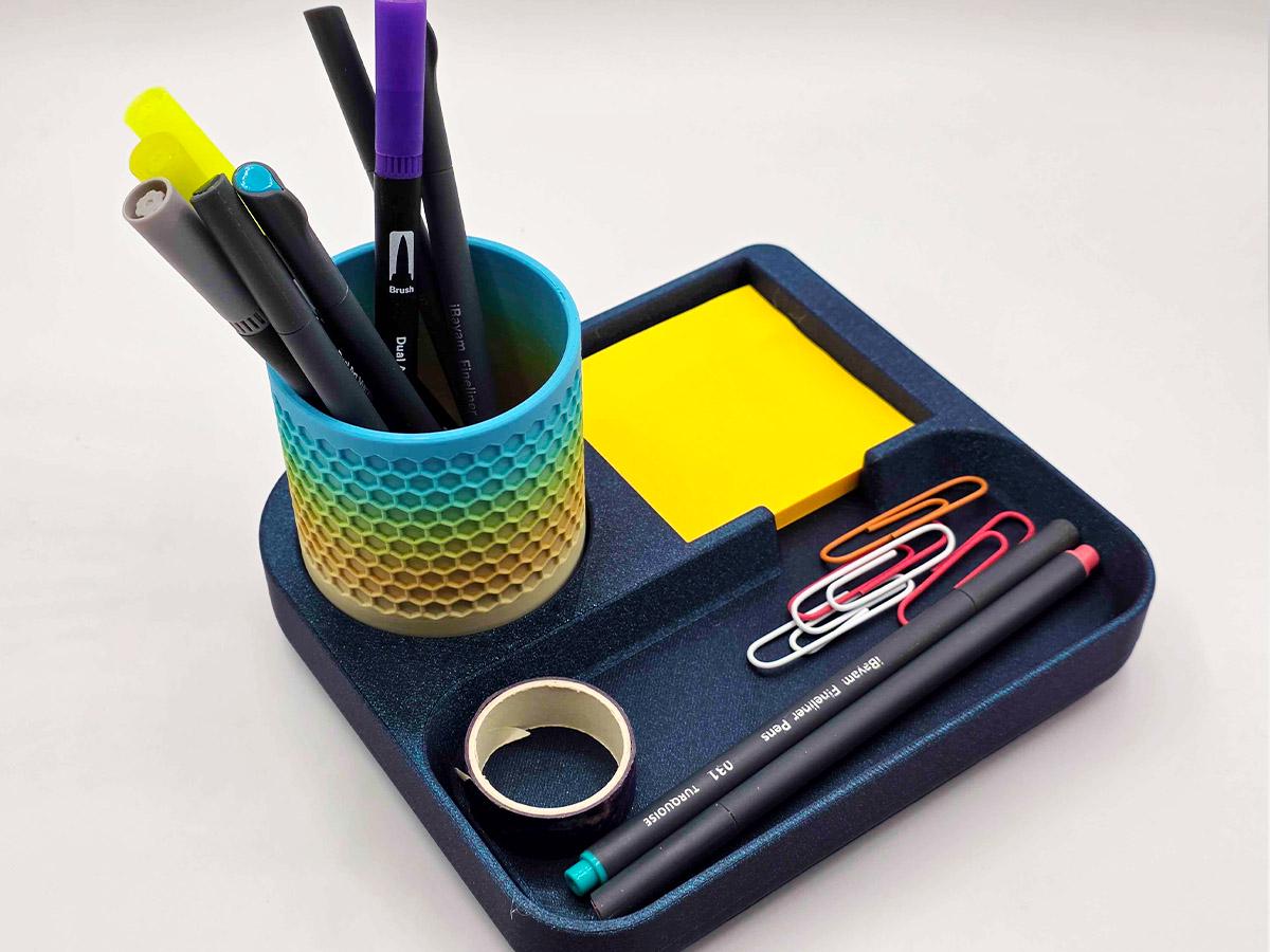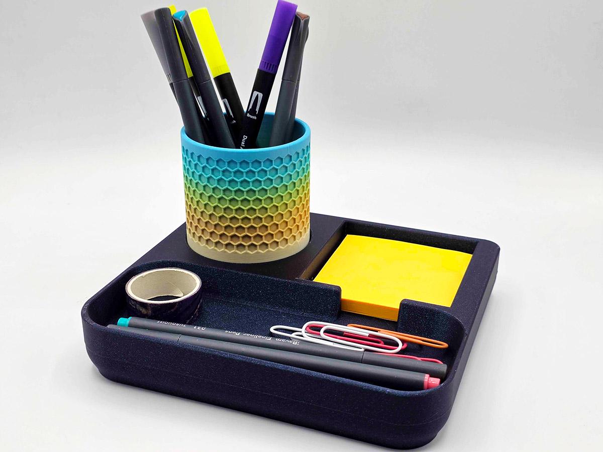 It also has space that perfectly matches the pen cup that comes with it! Printed with a honeycomb pattern, it's pretty and functional!