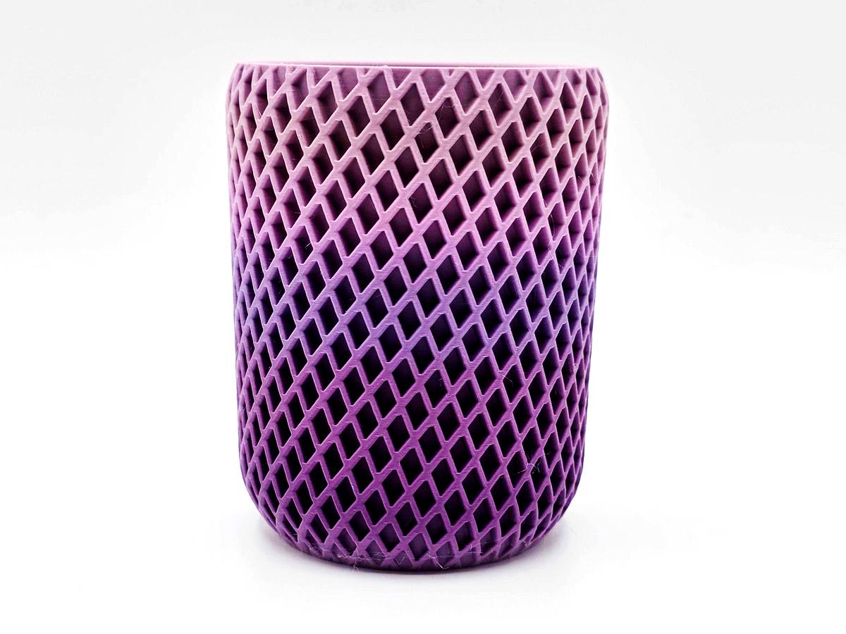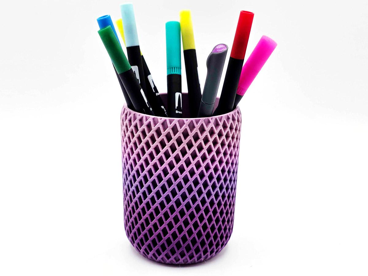 This pen cup is super sturdy and ready to hold all the pens, markers, and other desk things you have! It has a gorgeous diamond crosshatch pattern that really lets the gradient shine.