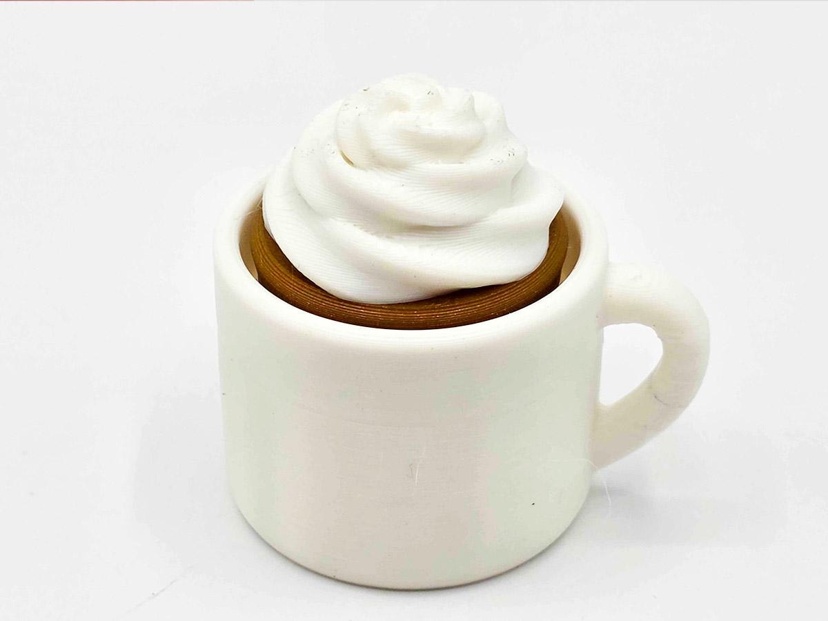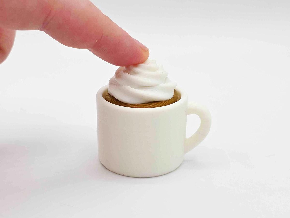 These fidget clickers are adorable white mugs. The tops come in four different styles: an elegant foam flourish, foam diamonds, a foam heart, or just good old fashioned whipped cream. When you tap the top, the keyboard switch underneath goes CLICK!