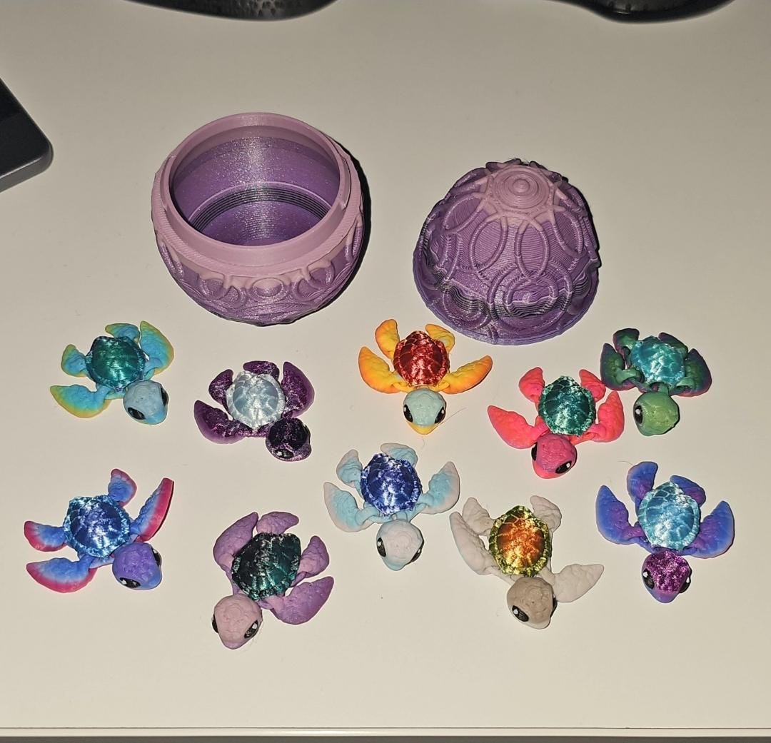 This listing is for 10 teeny tiny turtles. We'll do our best to make sure you have a selection of several different colors, but they will be completely random! They'll come packed into one of our mystery stripey colored eggs that are printed with filament that would otherwise go to waste during color changes!