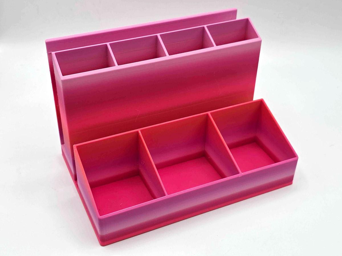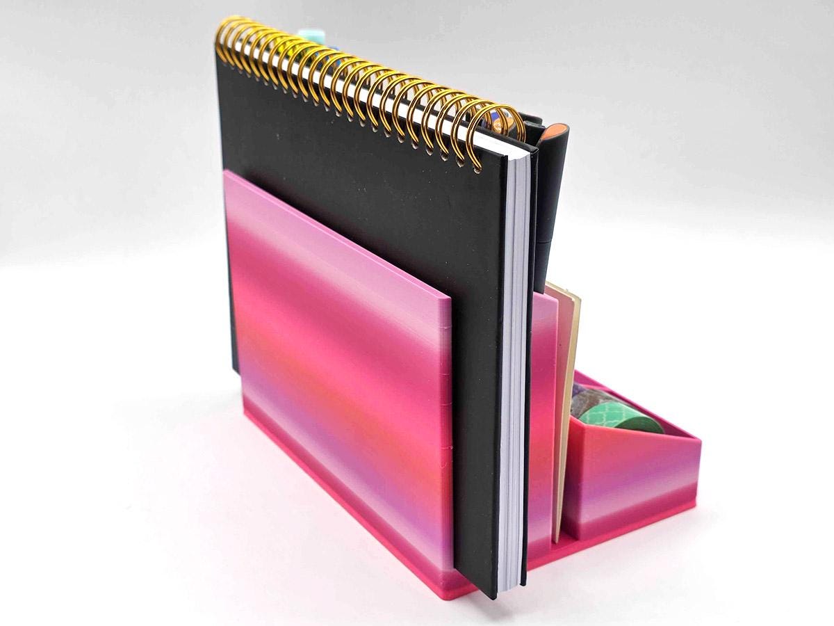 A basic organizer for your desk designed to hold a bullet journal or planner (5.5x8 or 6x9 fit best, but larger notebooks will probably work as well!) Because of the nature of gradients, your organizer may not have the colors start & stop on the same places on the organizer, but you will get the full color spectrum!