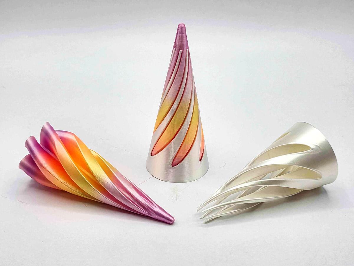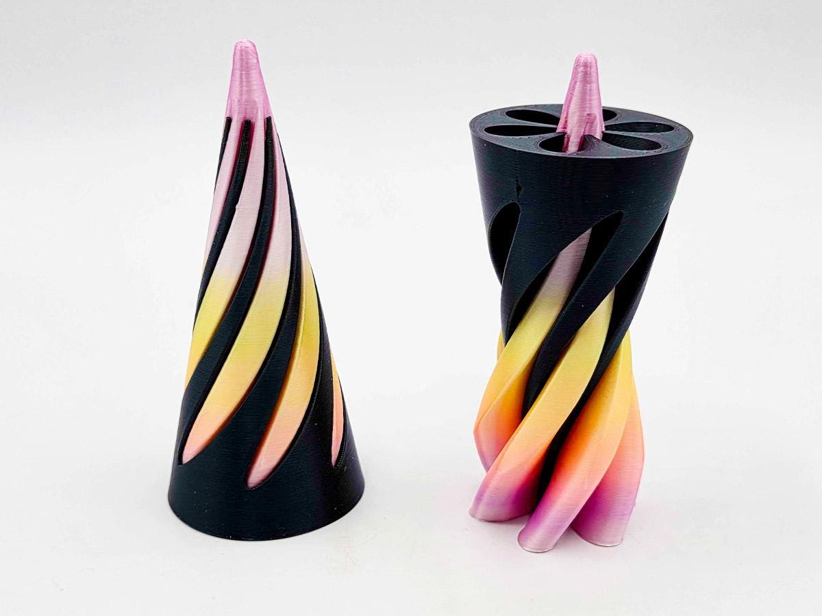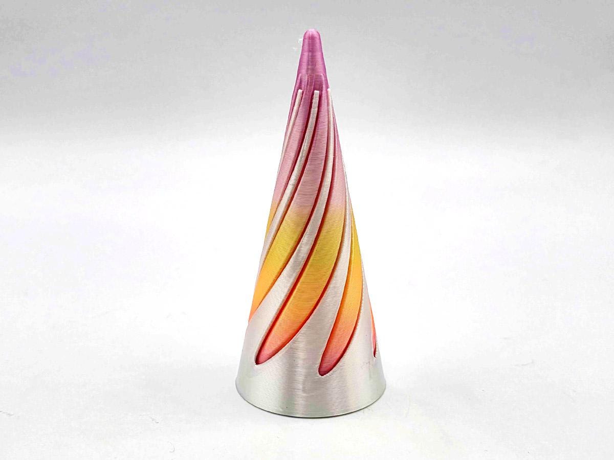 This is both a fidget toy and an optical illusion! Each cone comes with two parts: the colorful base and the contrasting top. Slide them together to form a cone... or flip them in the opposite direction and watch them pass through each other in a way that feels impossible.