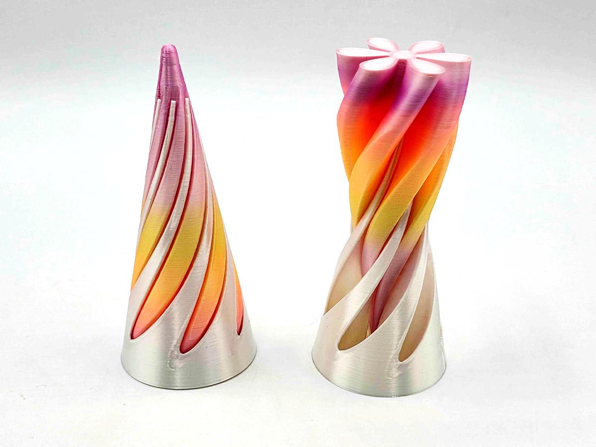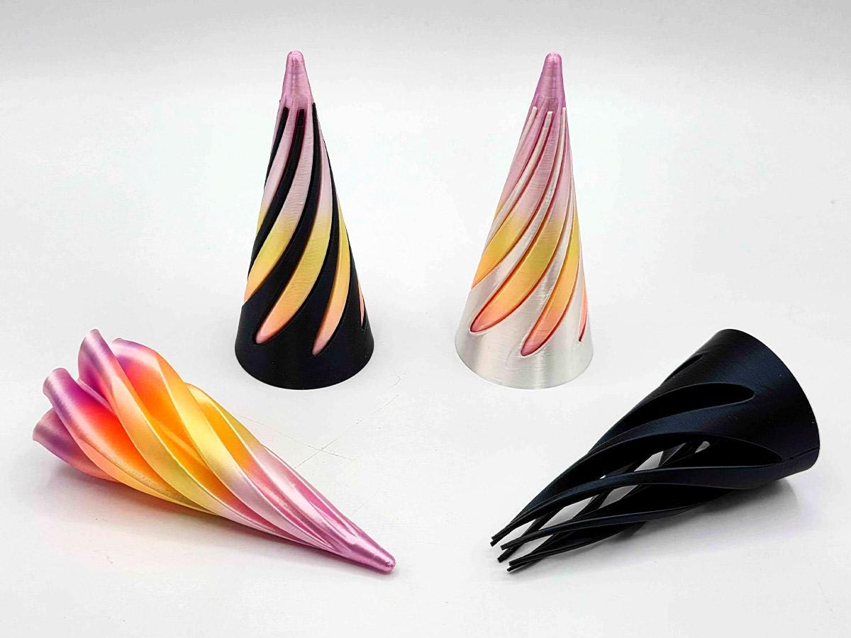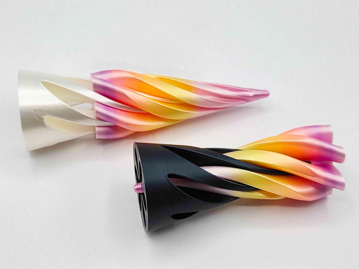 This is both a fidget toy and an optical illusion! Each cone comes with two parts: the colorful base and the contrasting top. Slide them together to form a cone... or flip them in the opposite direction and watch them pass through each other in a way that feels impossible.