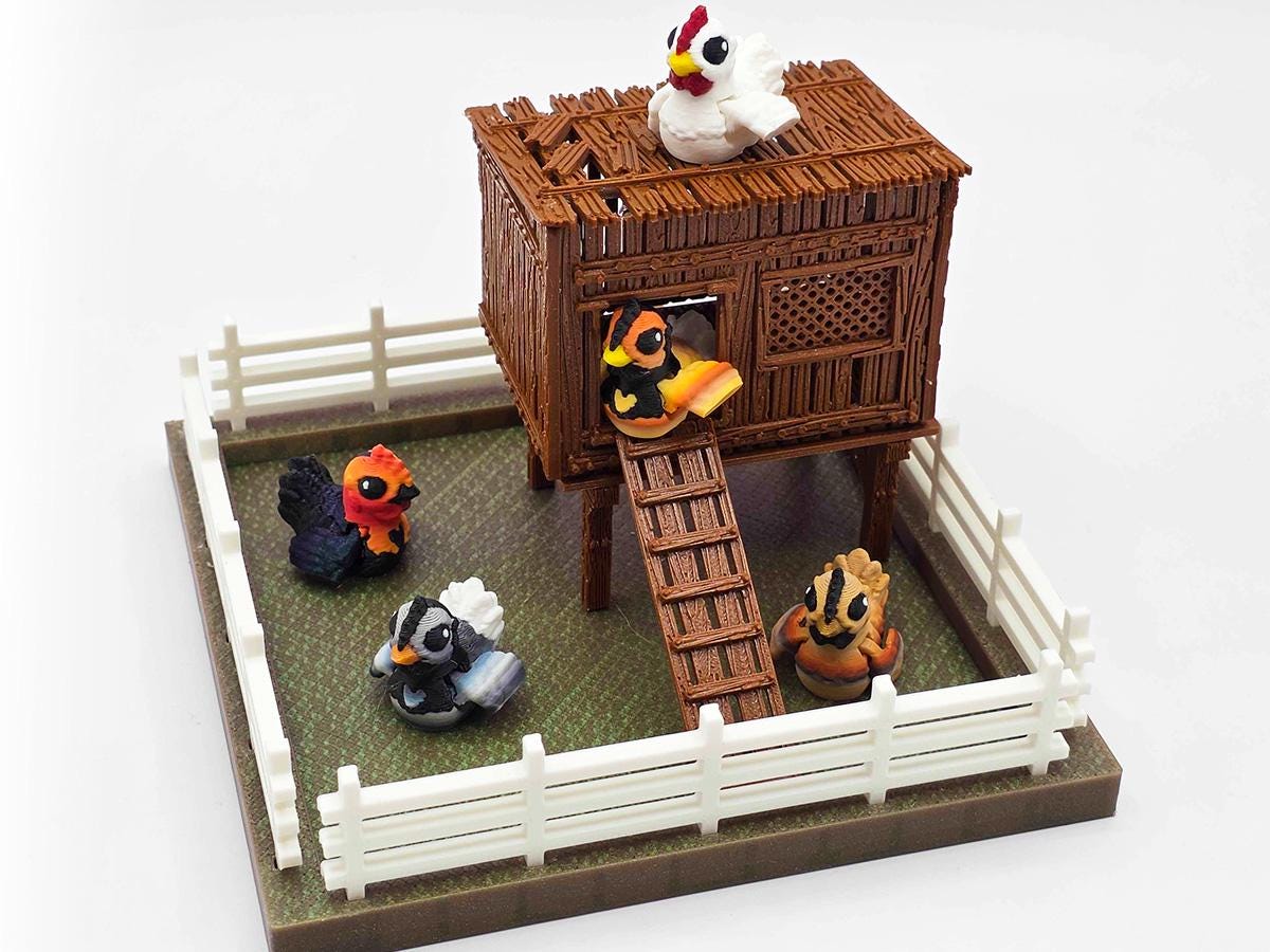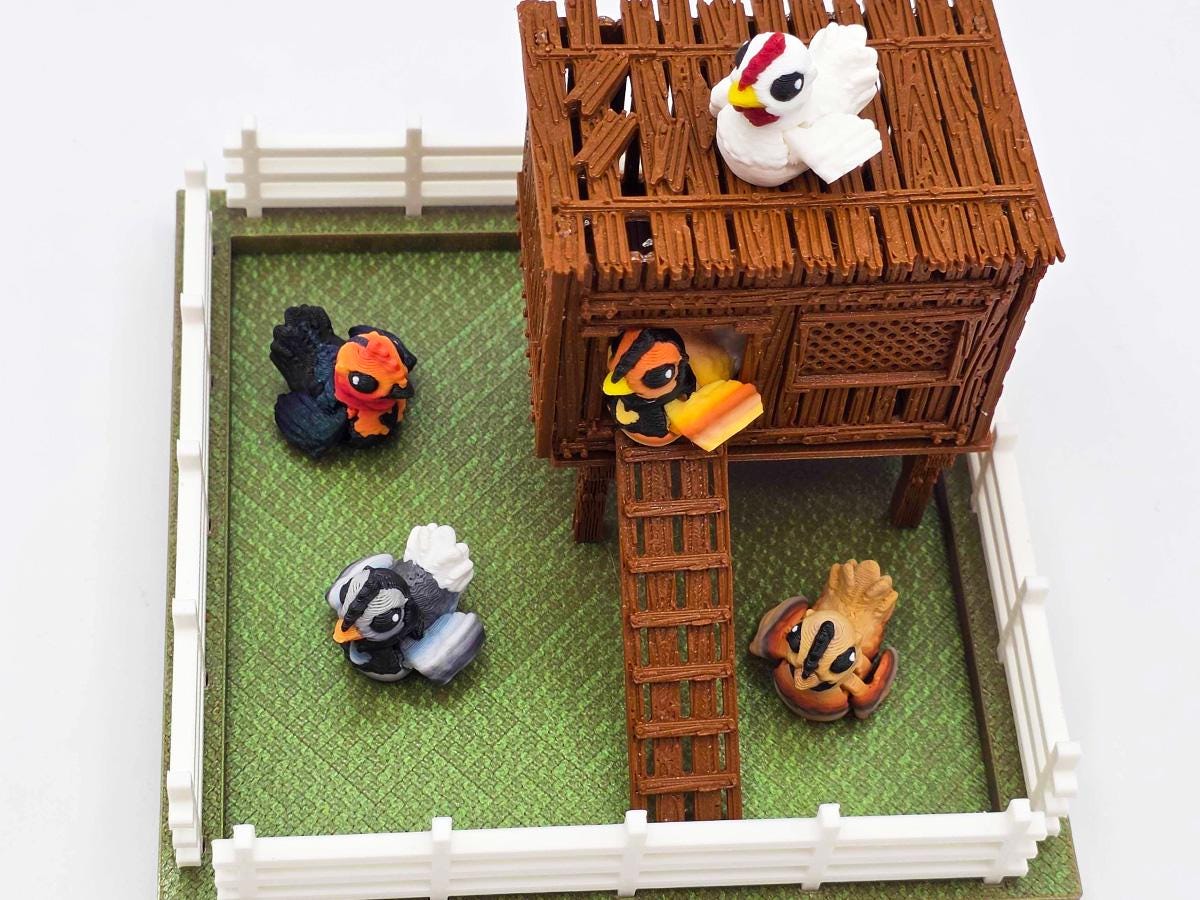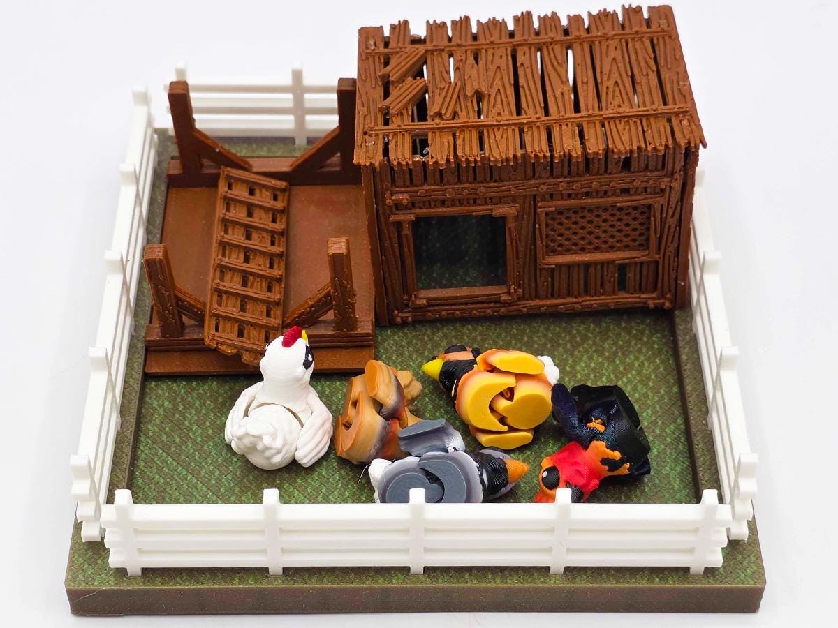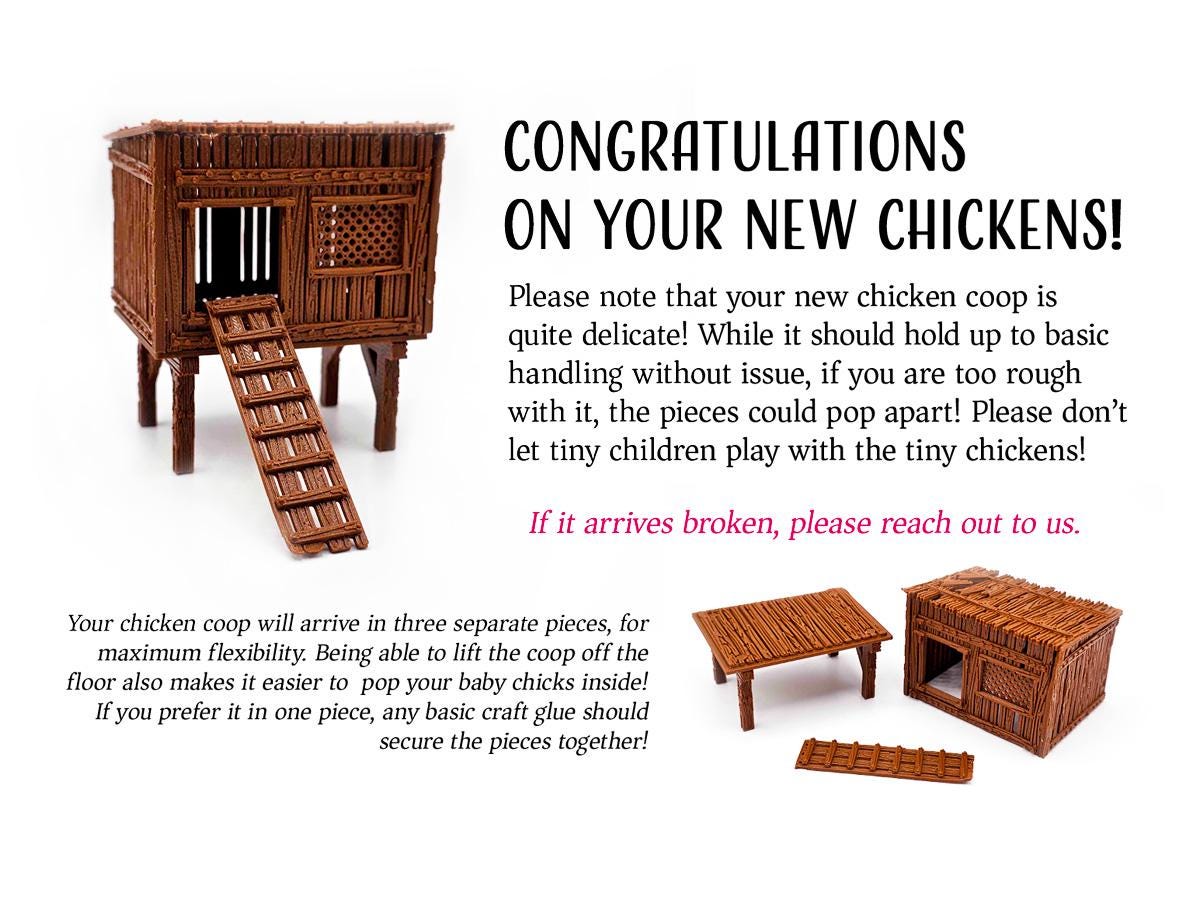 This listing for a chicken farm with a chicken coop & five tiny chickens is EXTREMELY LIMITED EDITION. These tiny coops are truly adorable but also pretty delicate and time-consuming to properly print and assemble. For that reason we are only selling TWENTY of this set.